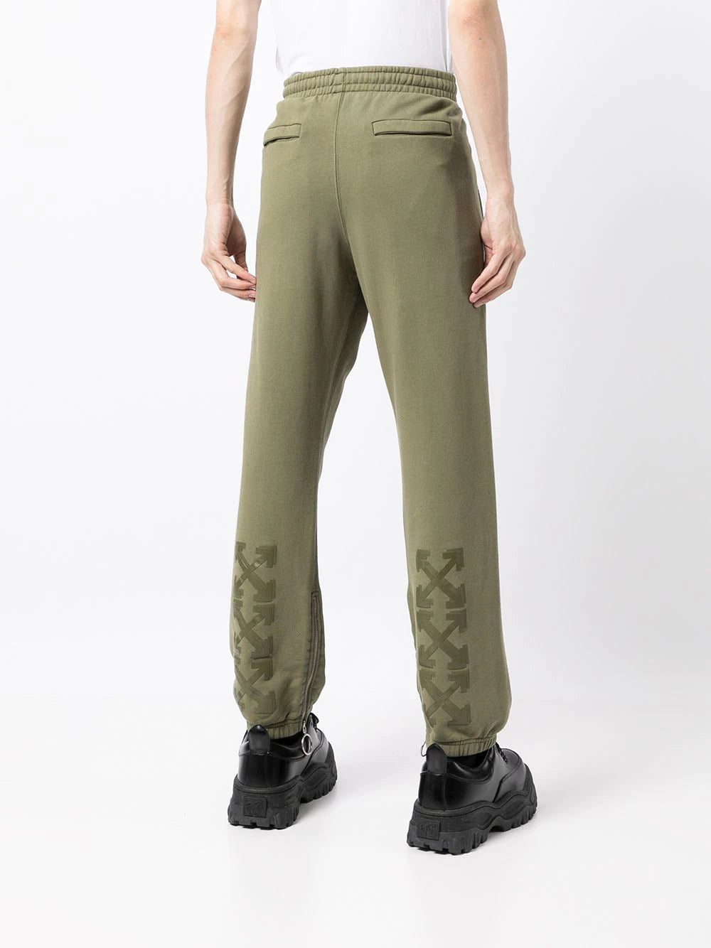 Off-White is an icon of streetwear - with signature logos and motifs known everywhere. Crafted from soft cotton, these green track pants appear with tonal Arrows on the back.