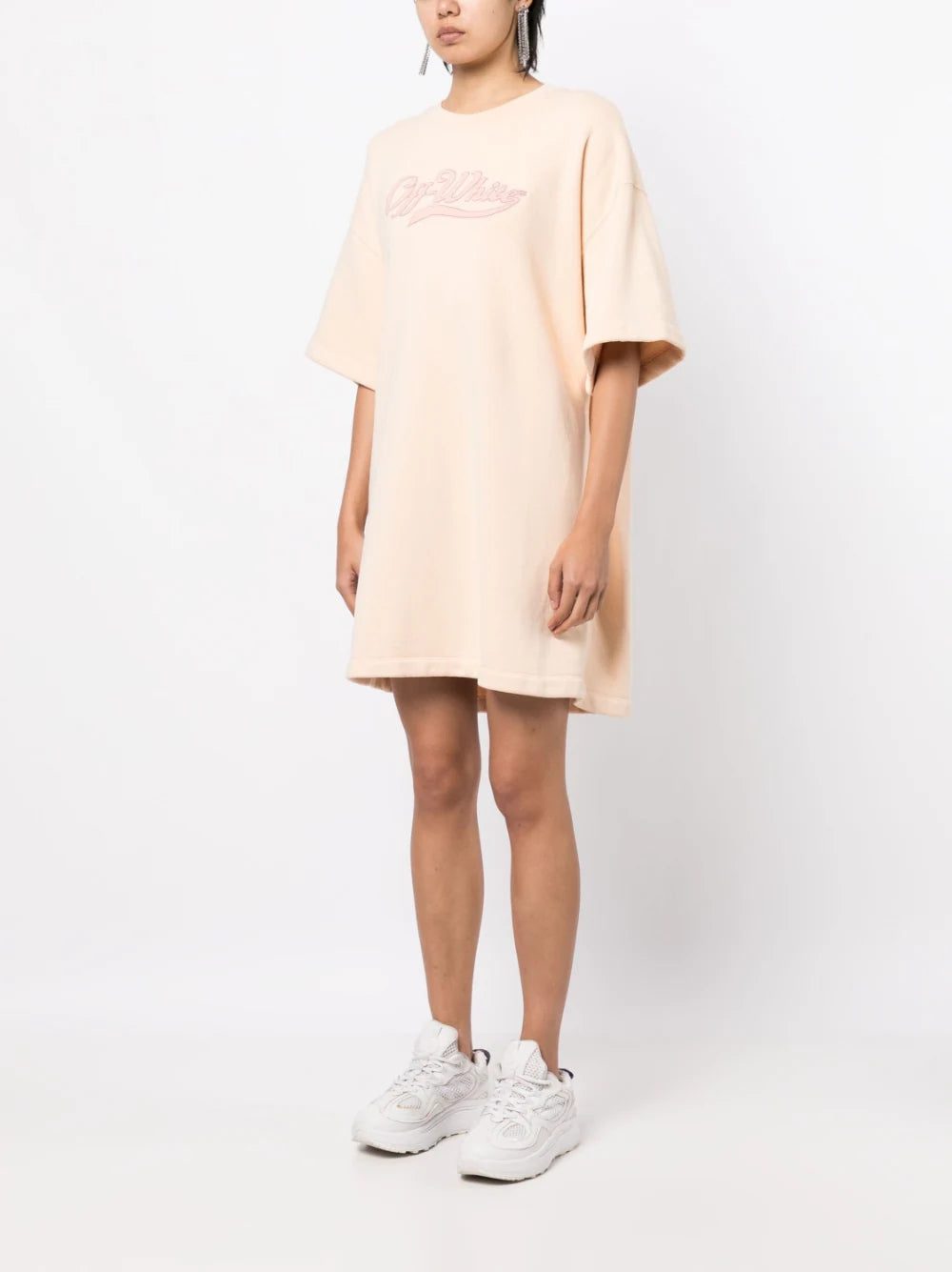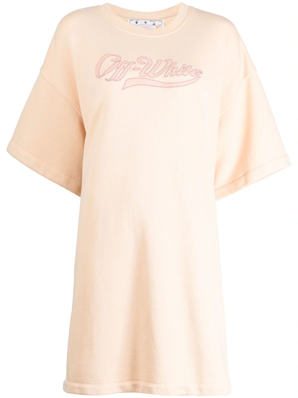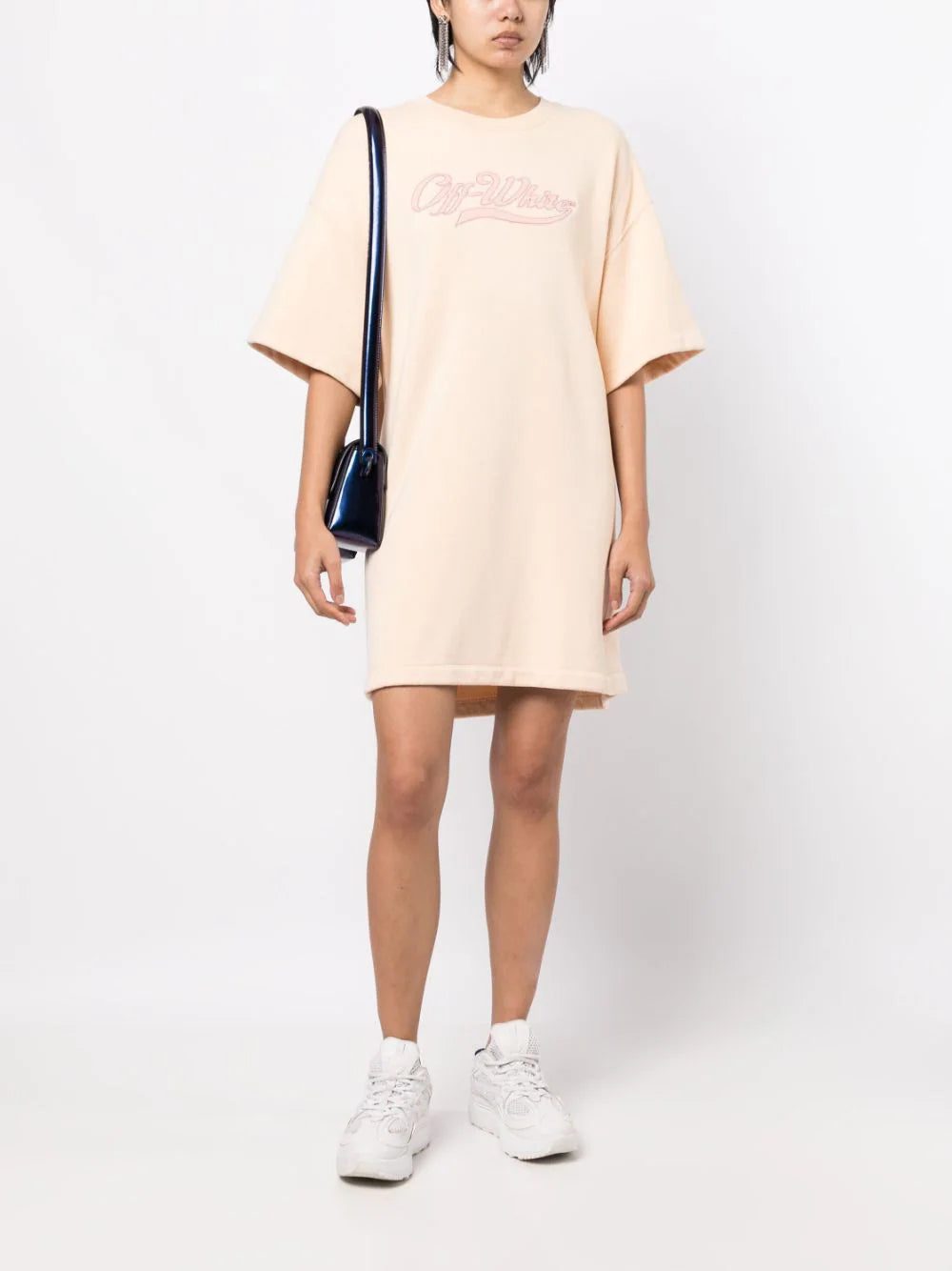 Off-White showcases its contemporary streetwear aesthetic in this T-shirt dress from the SS23 collection. The garment it's crafted from pure cotton and embroidered with a contrasting logo on the front.