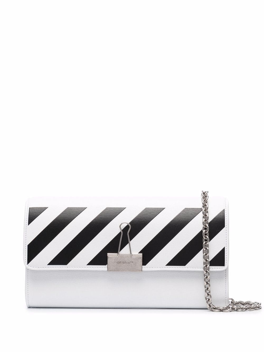 An instantly recognisable Off-White piece, this bag celebrates the label's industrial-inspired style. This chain-link shoulder bag gets its name from the Binder Clip fastening that punctuates its leather-made design. An iconic element that is complemented here by the identifiable front diagonal stripe print.