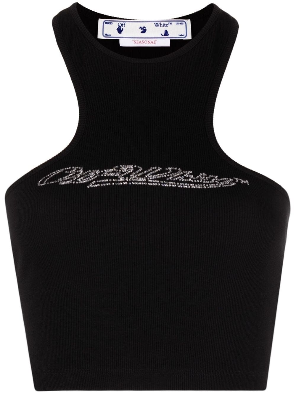 Inspired by noughties styles, this black Off-White tank top is characterised by its cropped silhouette. It's elevated by a crystal-embellished logo at the chest, emphasising the nostalgic mood.