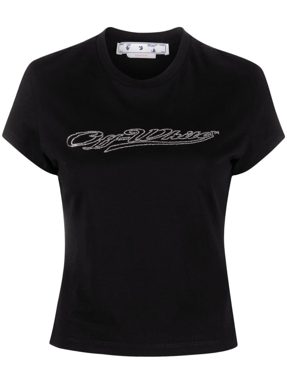 This short-sleeve T-shirt elevates Off-White's penchant for branded designs. Cut from cotton to a versatile black hue, it is detailed with the brand's crystal-embellished logo at the front.