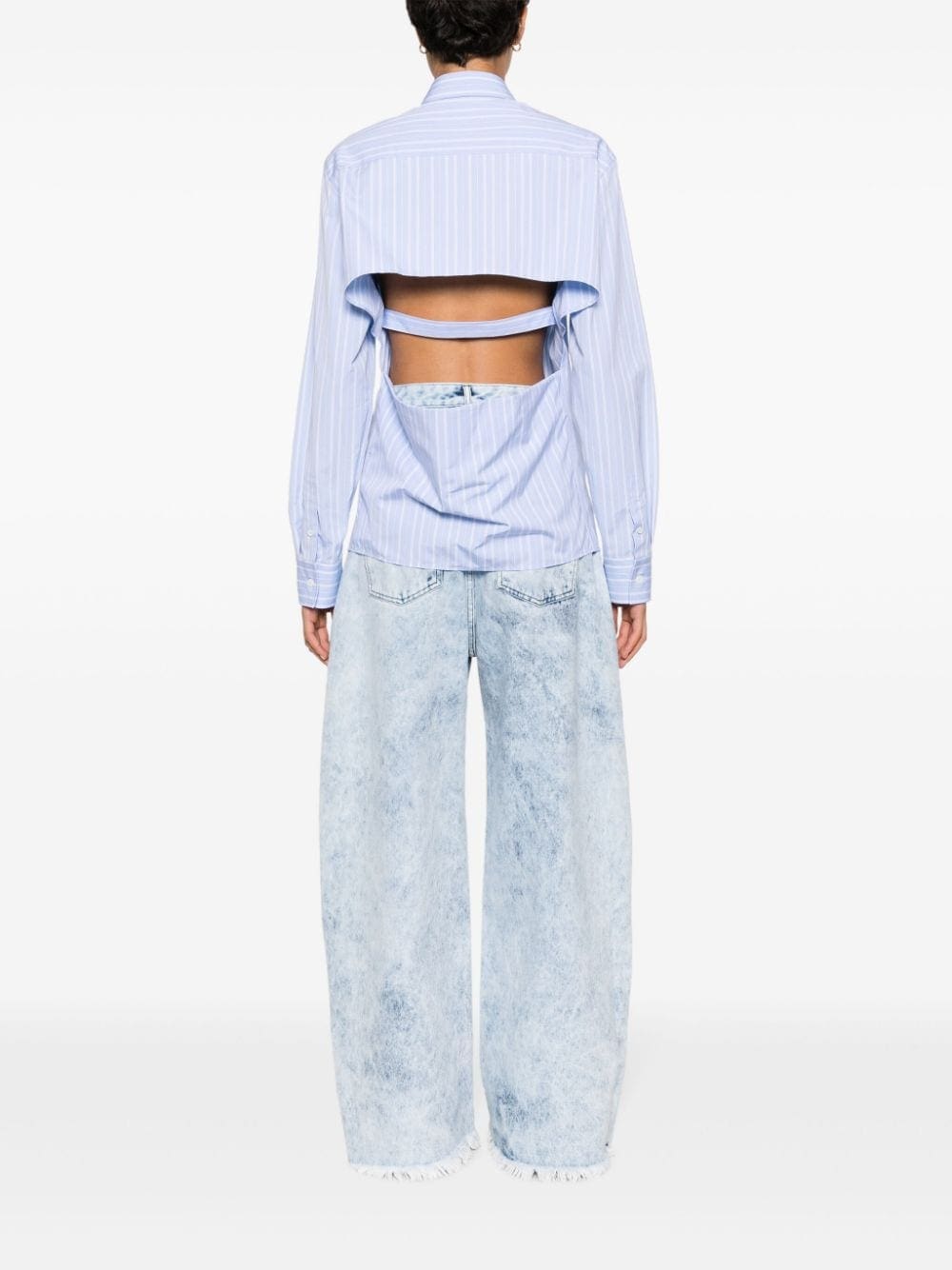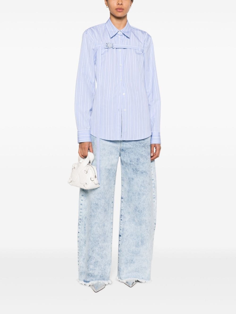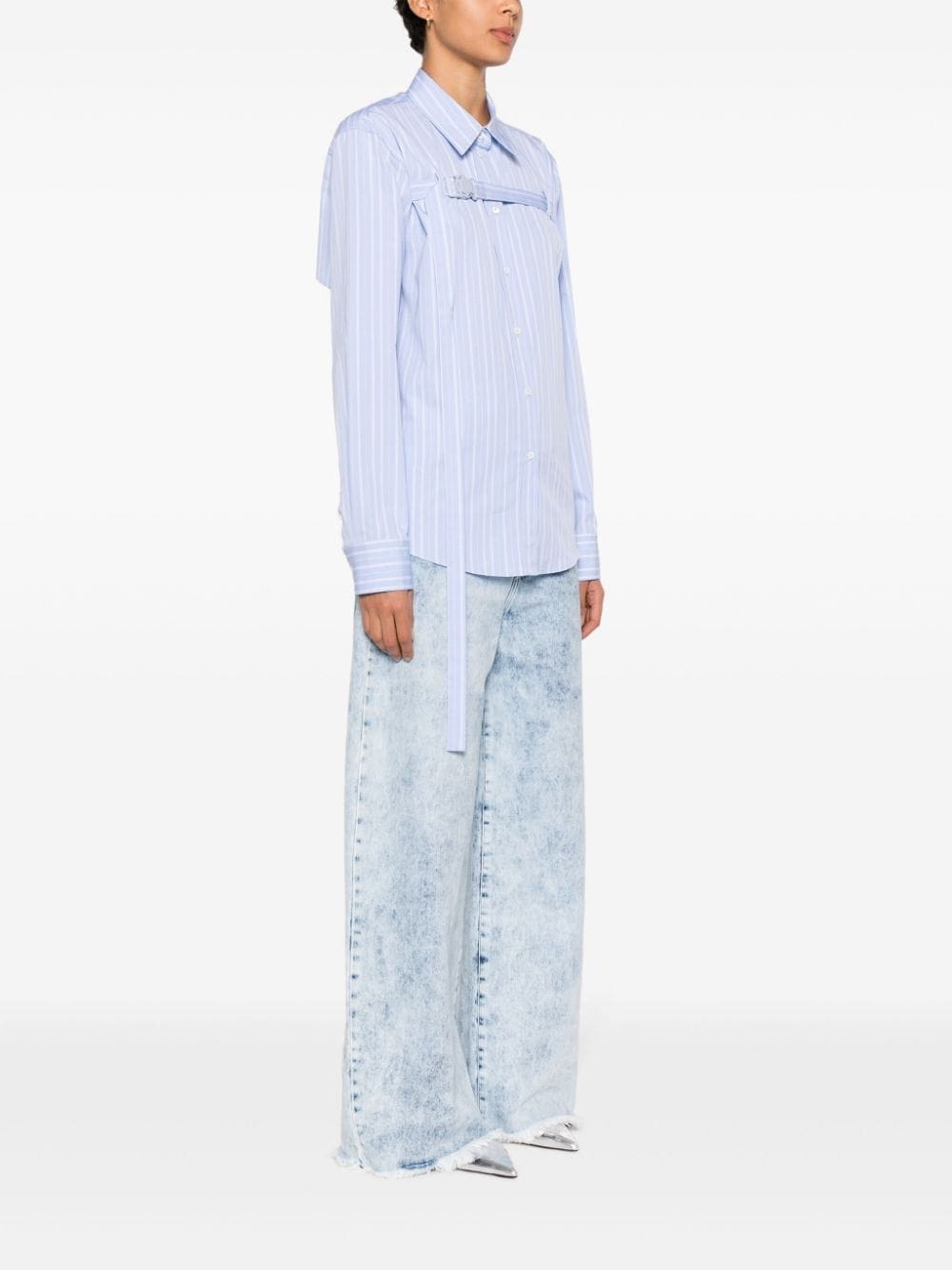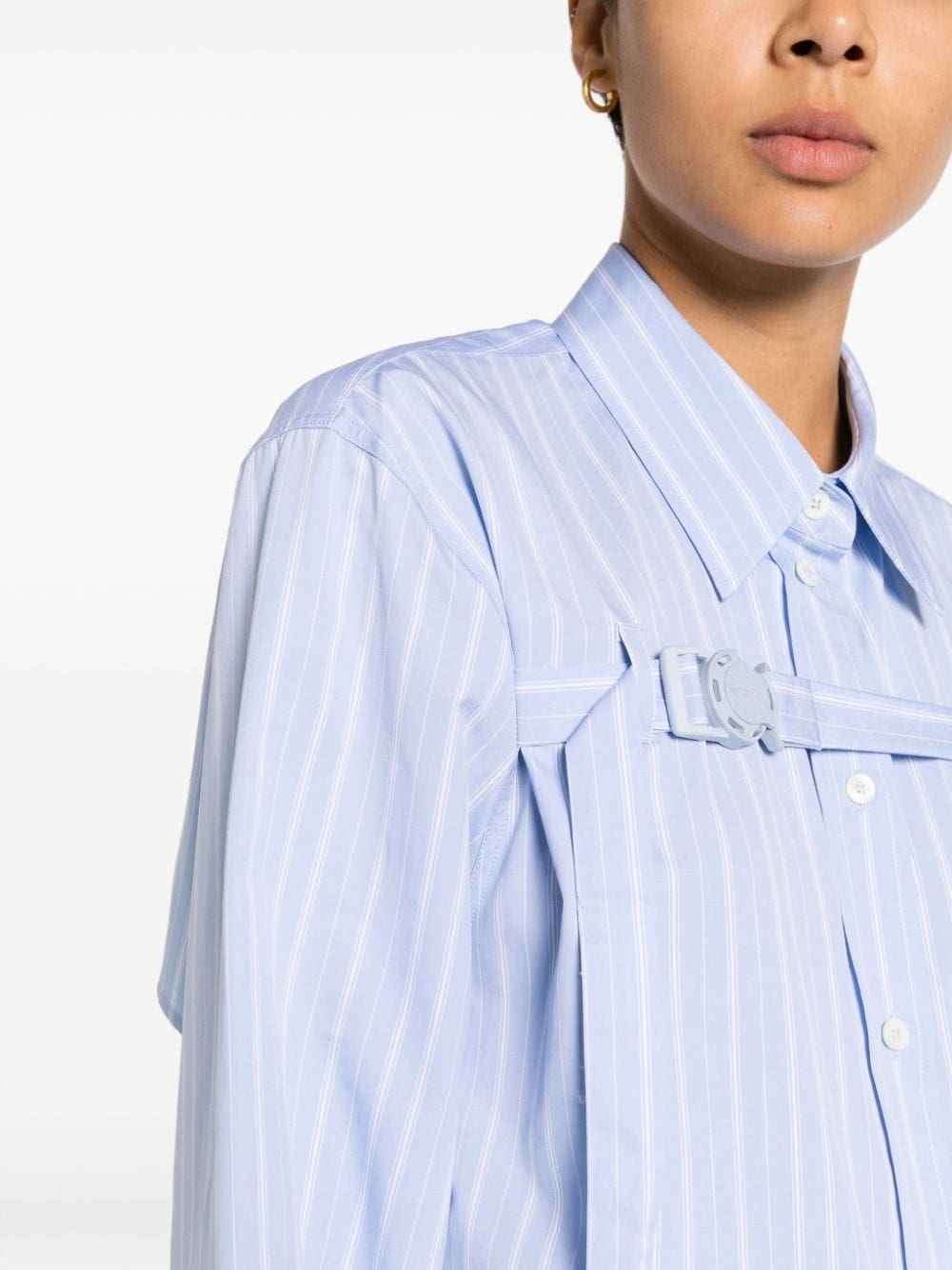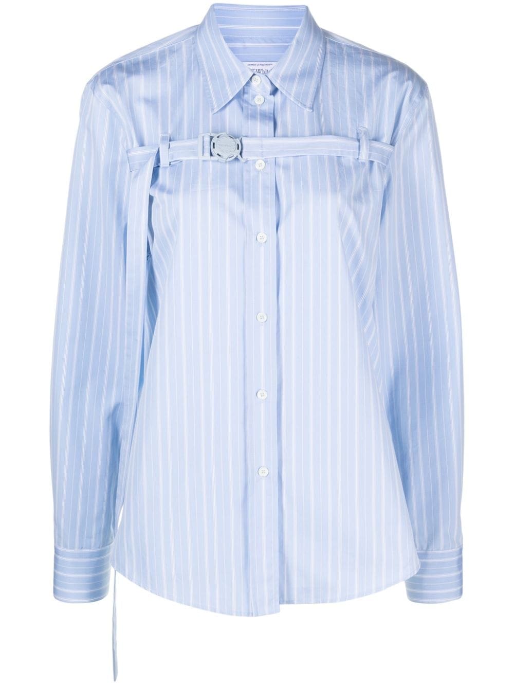 Off-White puts its signature industrial twist on this blue striped top. It’s cut to a classic shirting silhouette from crisp poplin and threaded with an elongated buckled strap across the front and dramatic cut-out back.
