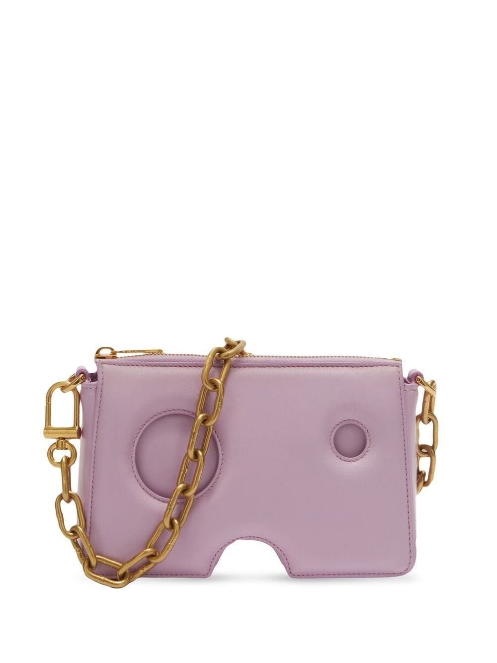Off-White's signature Burrow bag is defined by its structural Meteor cut-out detailing that is significant to the label's deconstructive aesthetic. The accessory appears here in a mini iteration, finished with a gold-tone chain-link shoulder strap.