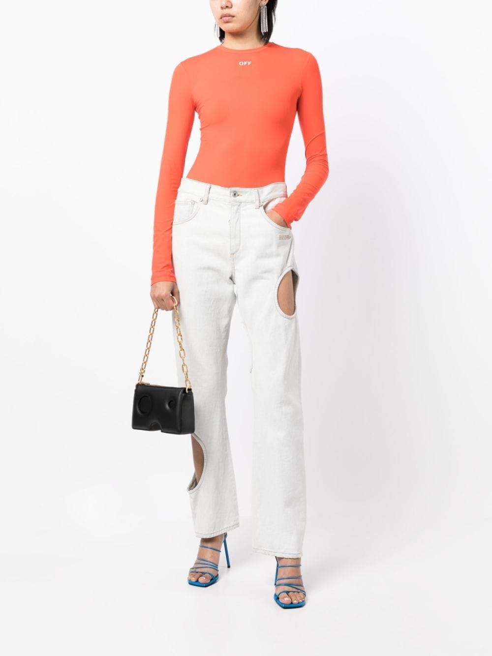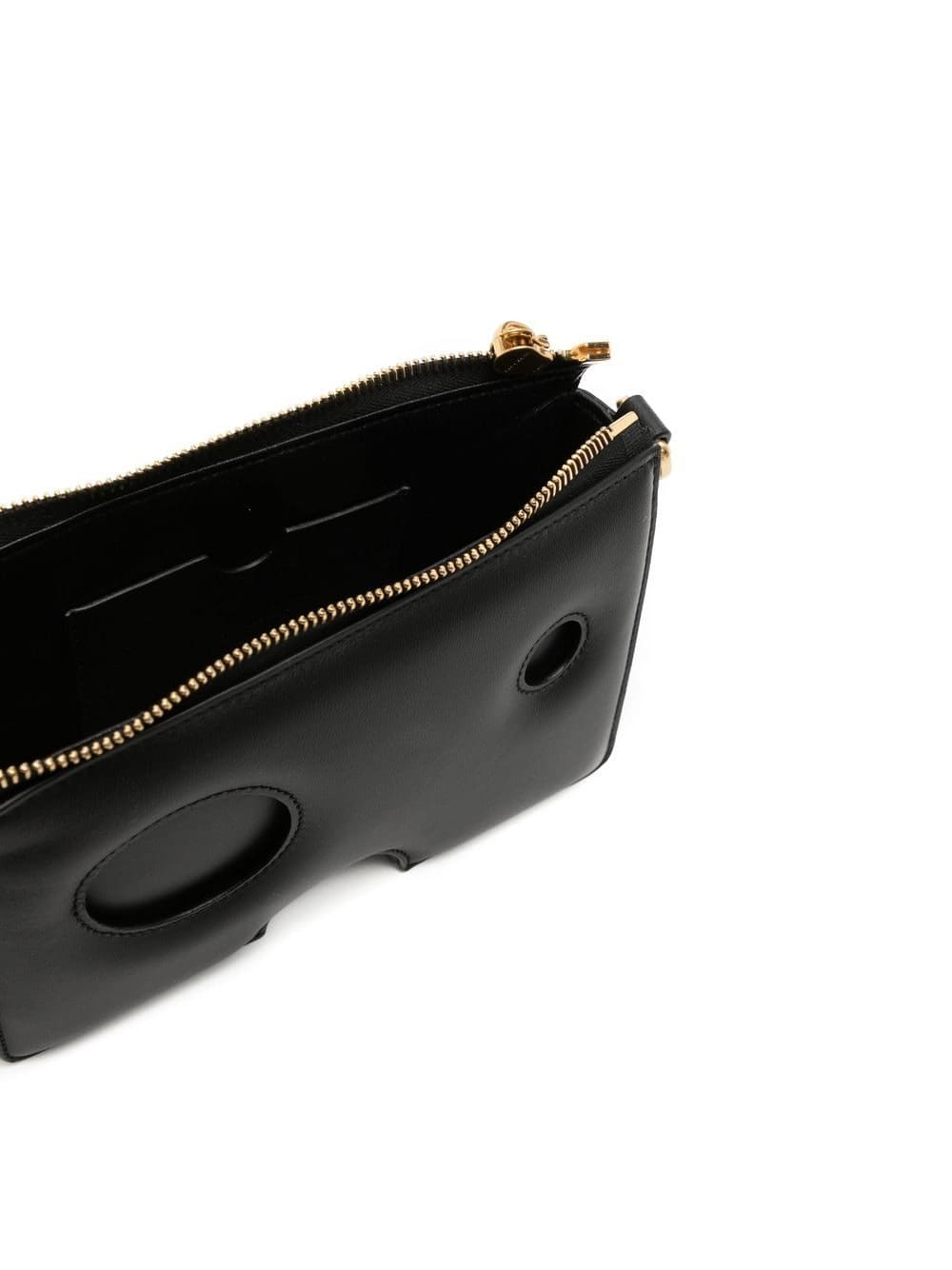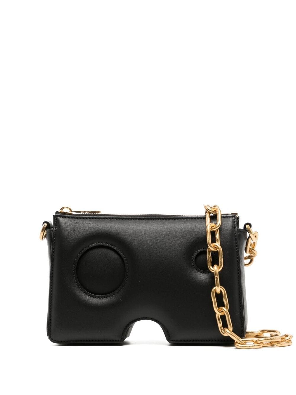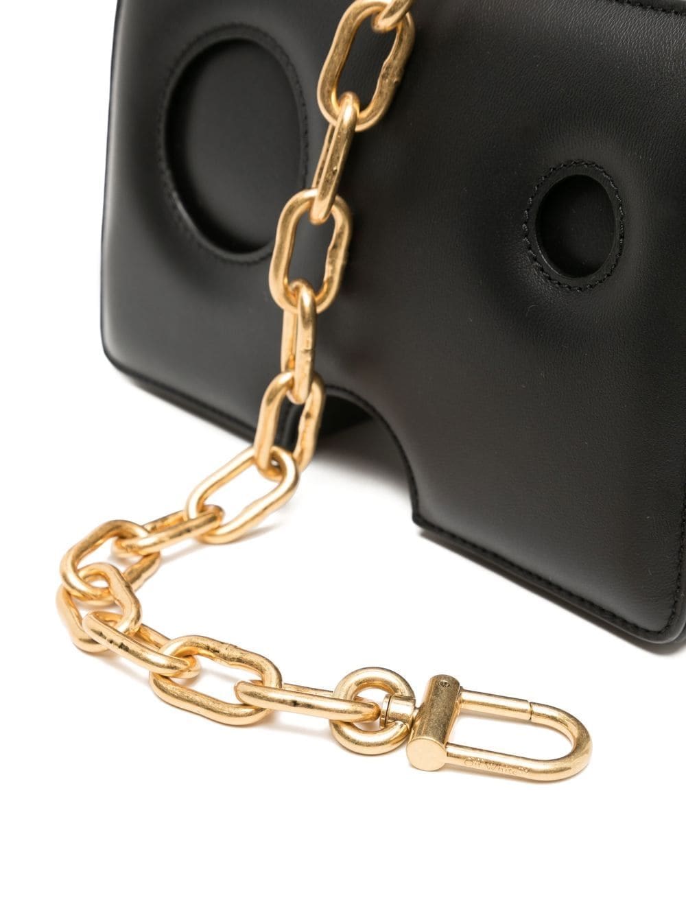Off-White's offbeat spirit and directional design aesthetic underpins the structured shape of this black leather shoulder bag. It's elevated by meteor holes that lend the piece a sculptural feel.