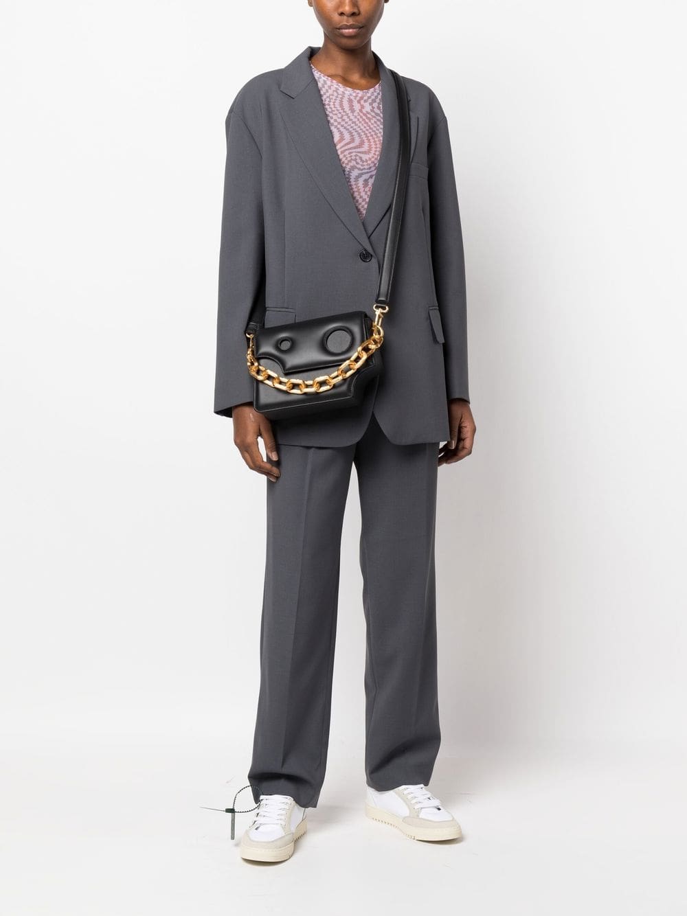 Off-White's Burrow bag is a signature silhouette that is made instantly recognisable by meteor cut-out detailing. This iteration benefits from a gold-tone chain-link handle, alongside a single shoulder strap, allowing for versatile styling.