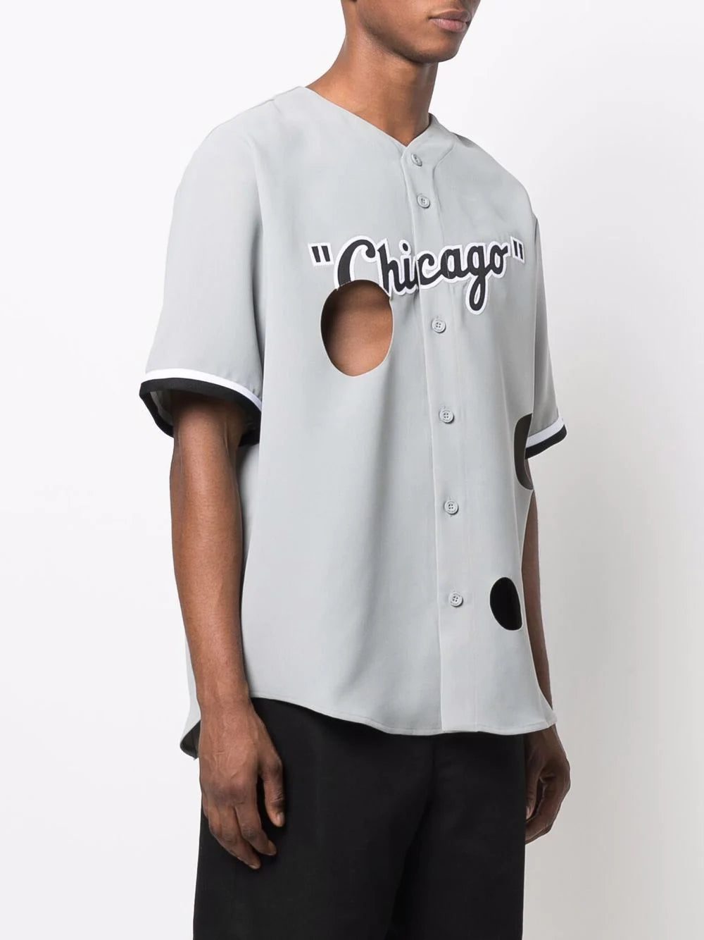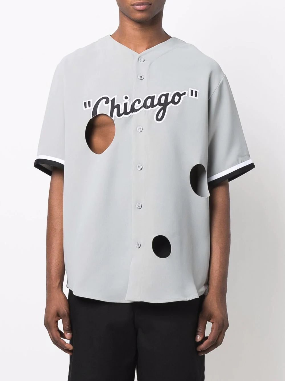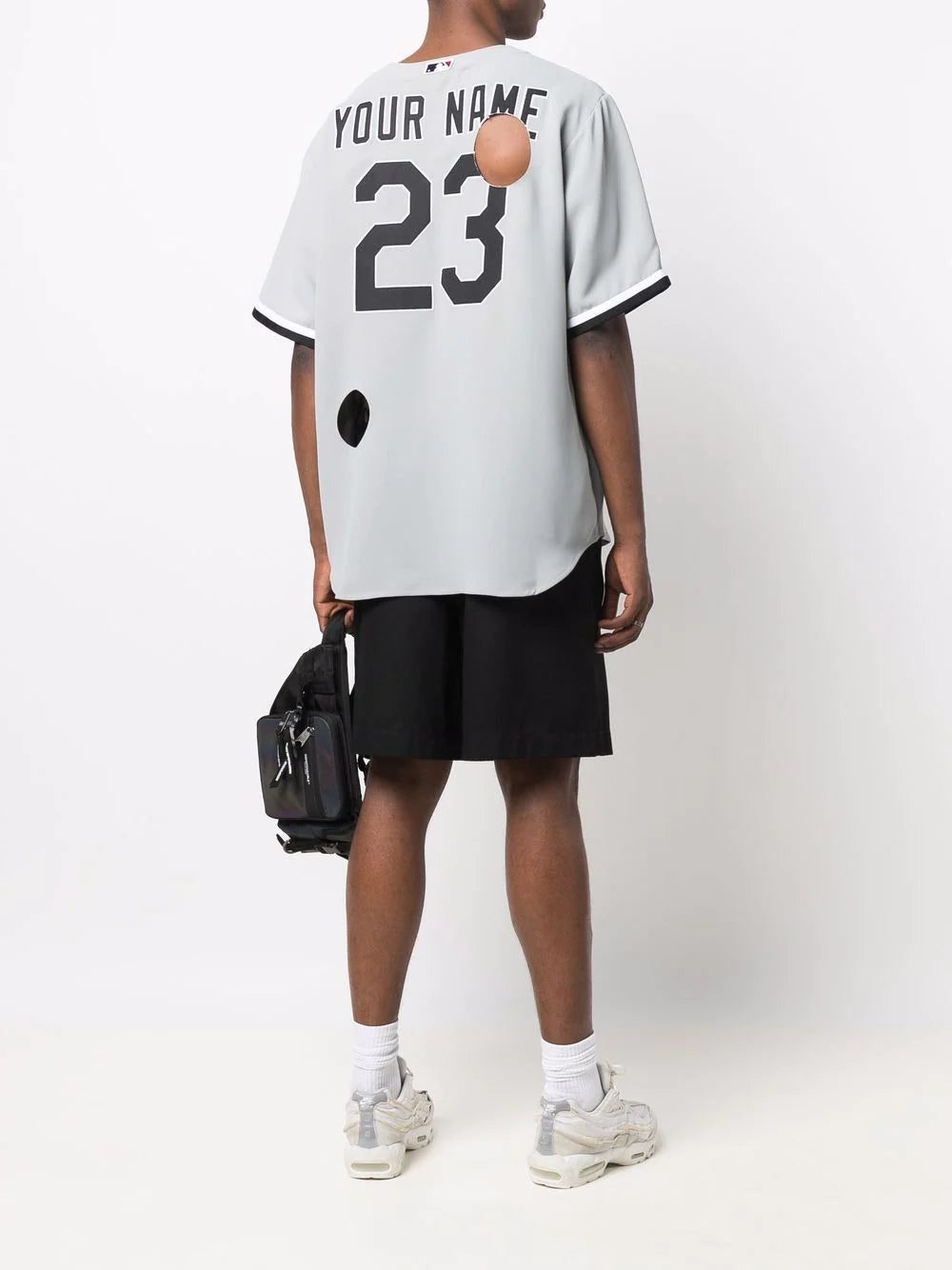 Off-White showcase a subversive take on sportswear with this Chicago shirt. Featuring a classic jersey-style silhouette, the design is elevated with cut out detailing and a slogan print to the rear reading 'Your Name' in the brand's playful style.