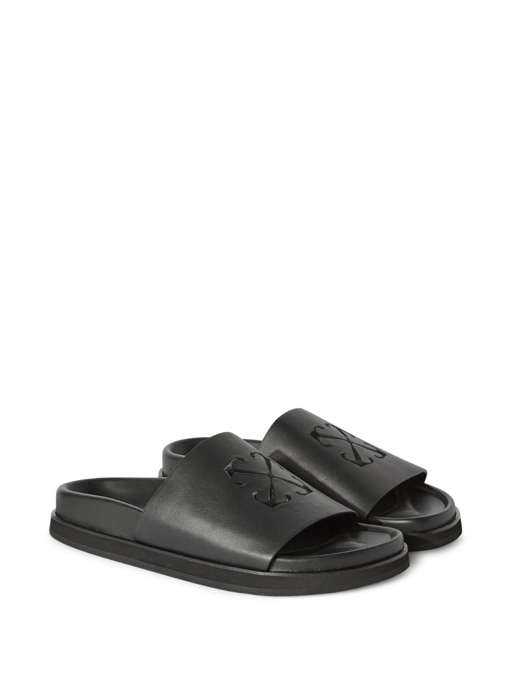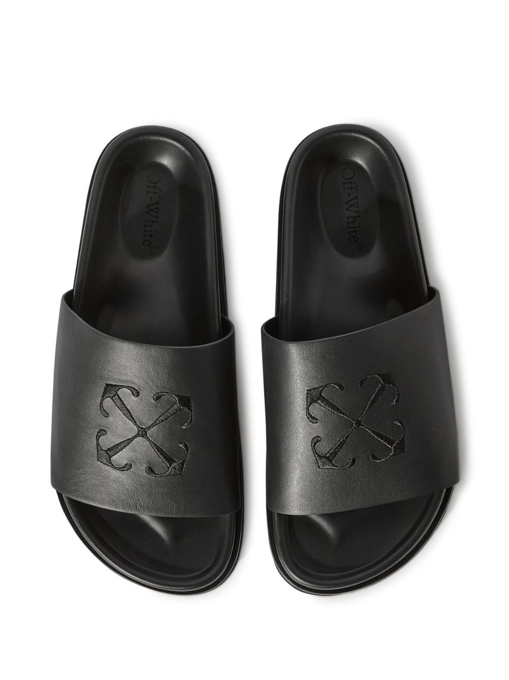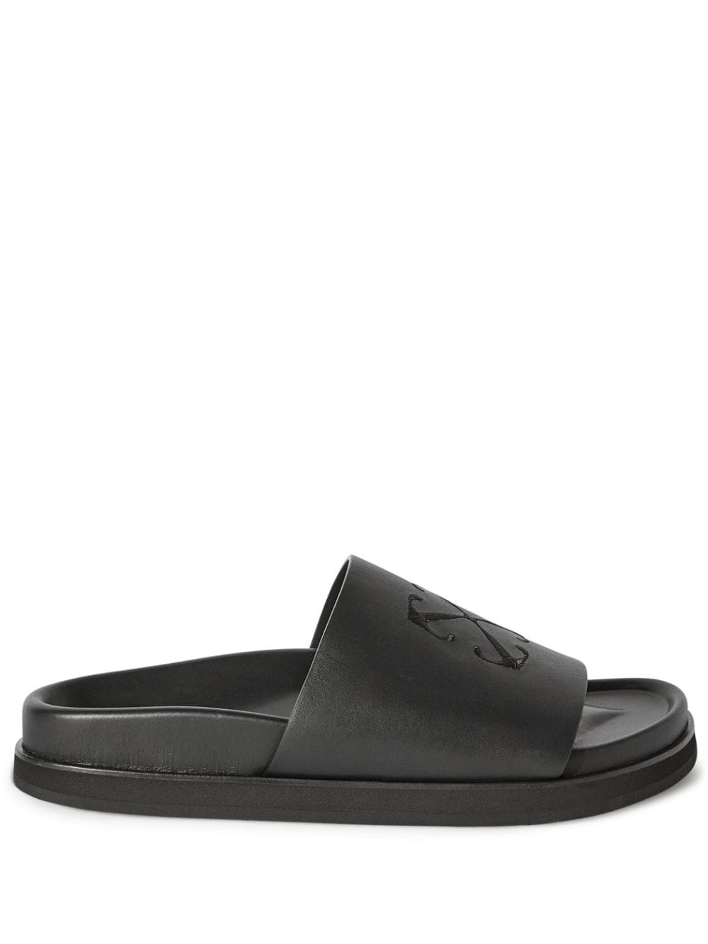 Presented in a tonal design, these Cloud sliders by Off-White are decorated with a delicate Arrow embroidery for a recognisable finish. Made from black leather, the slip-on pair benefits from a moulded footbed with a slightly elevated platform.