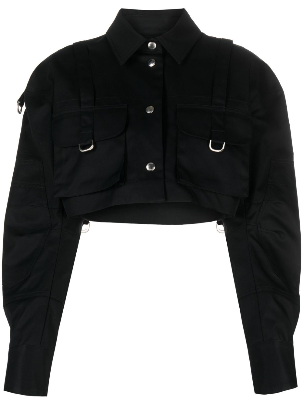 Cut from cotton to an exaggerated cropped silhouette, Off-White's jacket is imbued with utilitarian energy thanks to patch pockets at the chest and extended strap detailing.