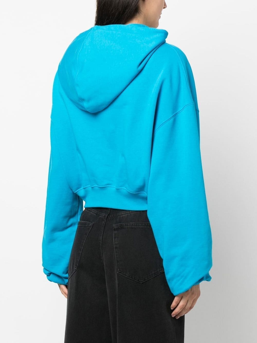 Off-White's hoodie is punctuated by the vibrant teal-blue hue that lends a bright burst of colour to this cropped style. The contrasting white logo print at the chest is the only form of decoration.