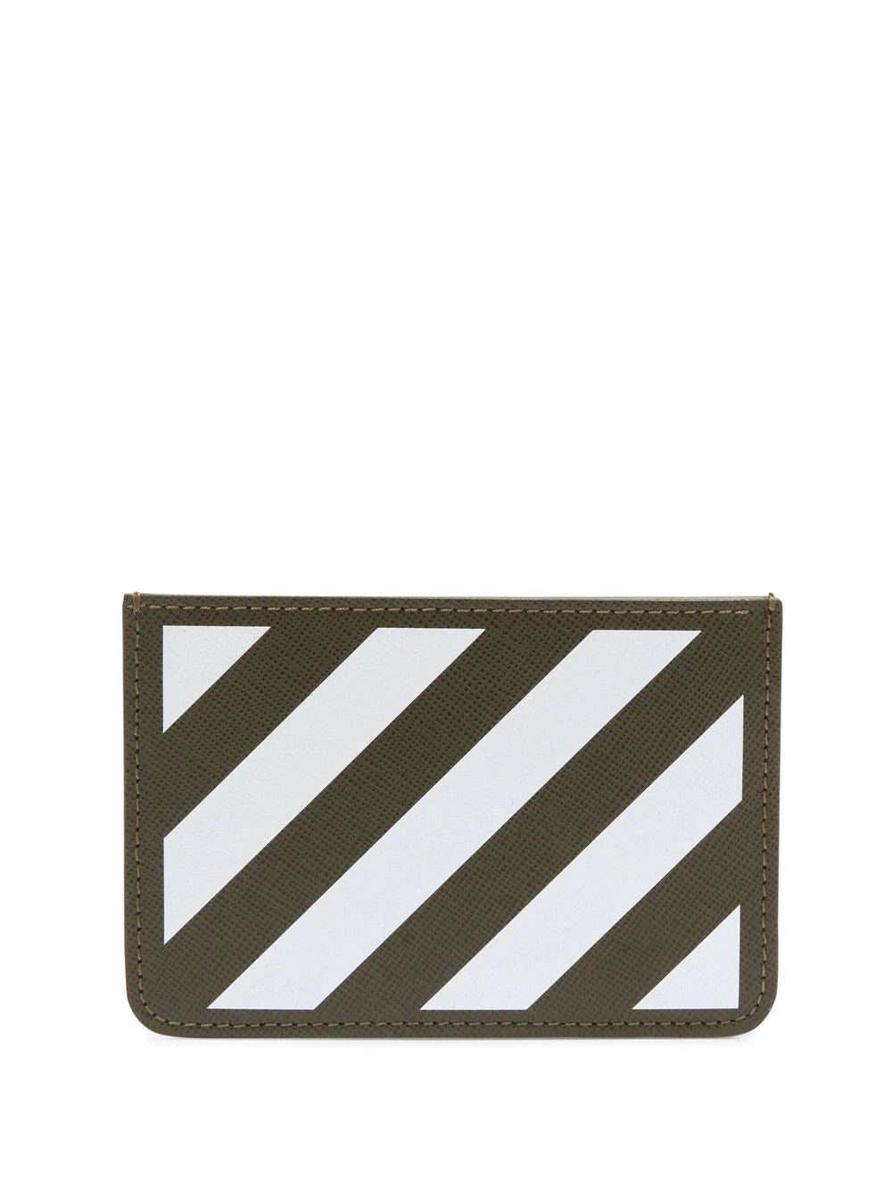 Crafted from Saffiano leather, this cardholder is detailed with a bold Diag-stripe pattern. A key brand motif, this embellishment adds a contemporary finish to the compact piece.