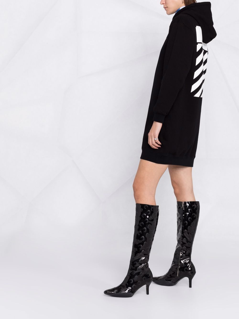 Off-White showcases one of its most iconic motifs with this sweatshirt dress. Spun from cotton and following a classic sweatshirt dress silhouette, this dress comes with the signature diag-stripe print to the rear in a contrasting colourway.