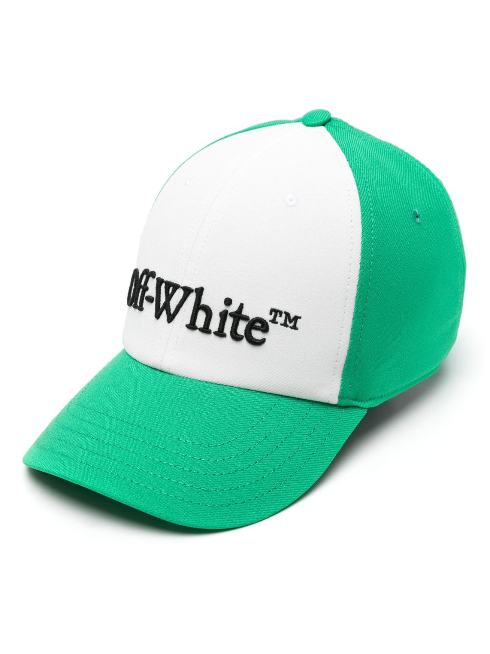 Off-White's classic baseball cap is embroidered with logo lettering on the front in contrasting black threads.