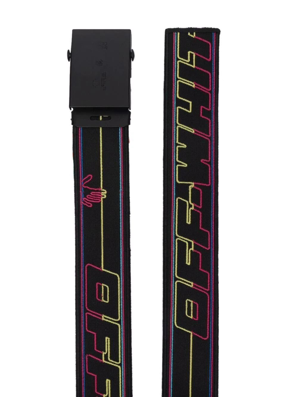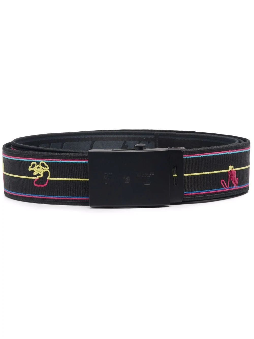 Embroidered in a multicoloured colourway, this Off-White belt features the brand's signature Drowning Man logo all around and engraved on the adjustable belt buckle.