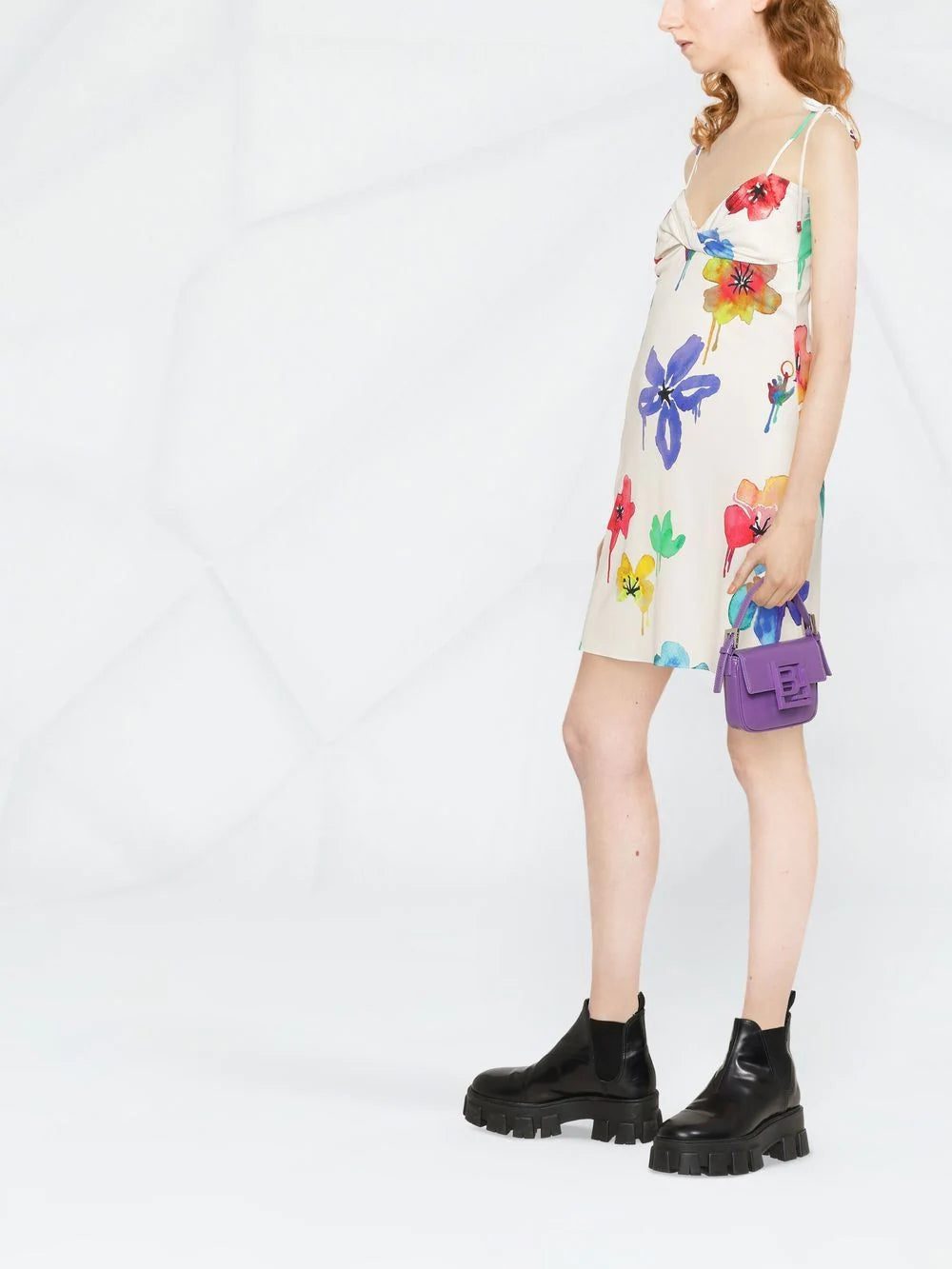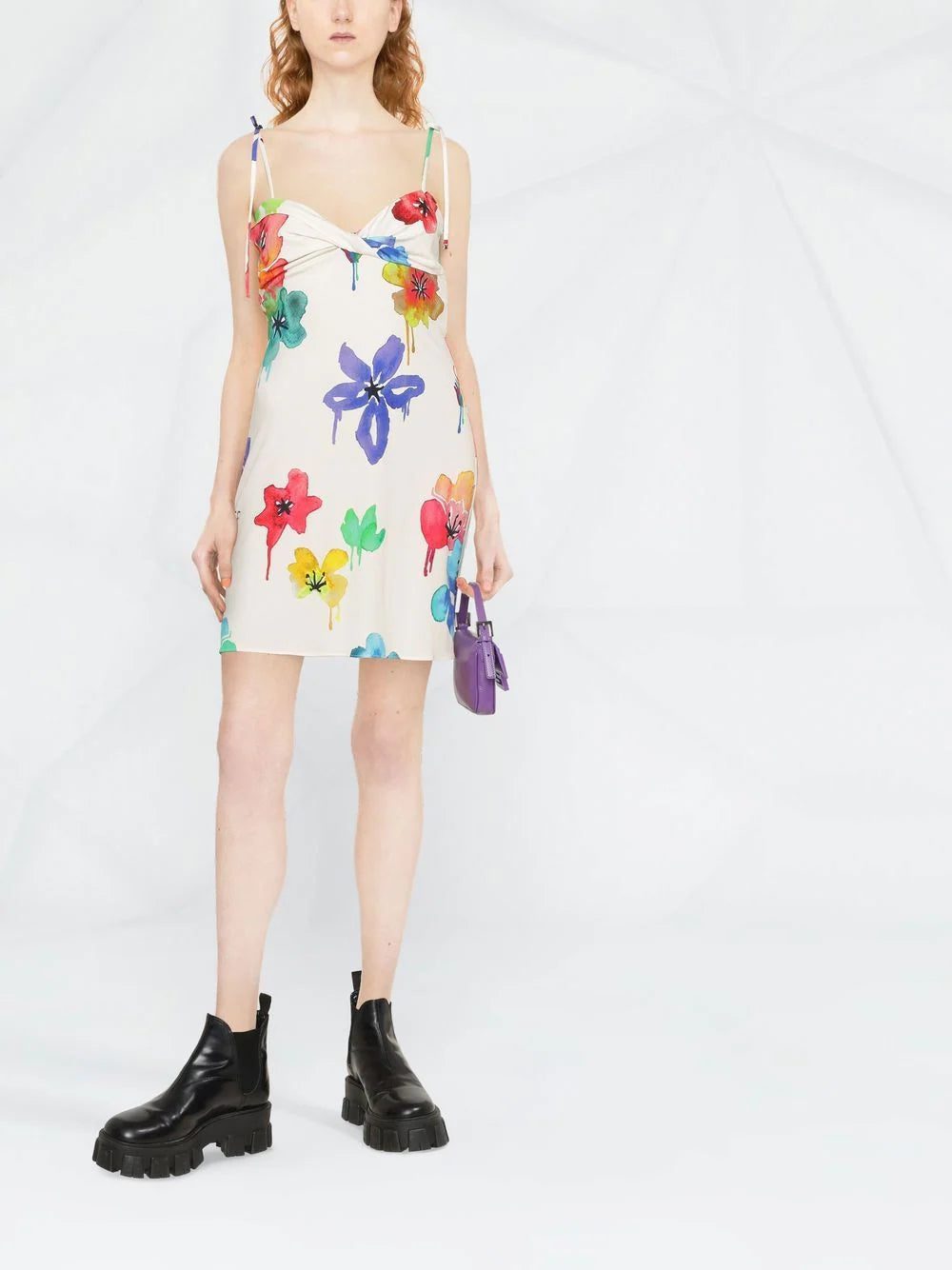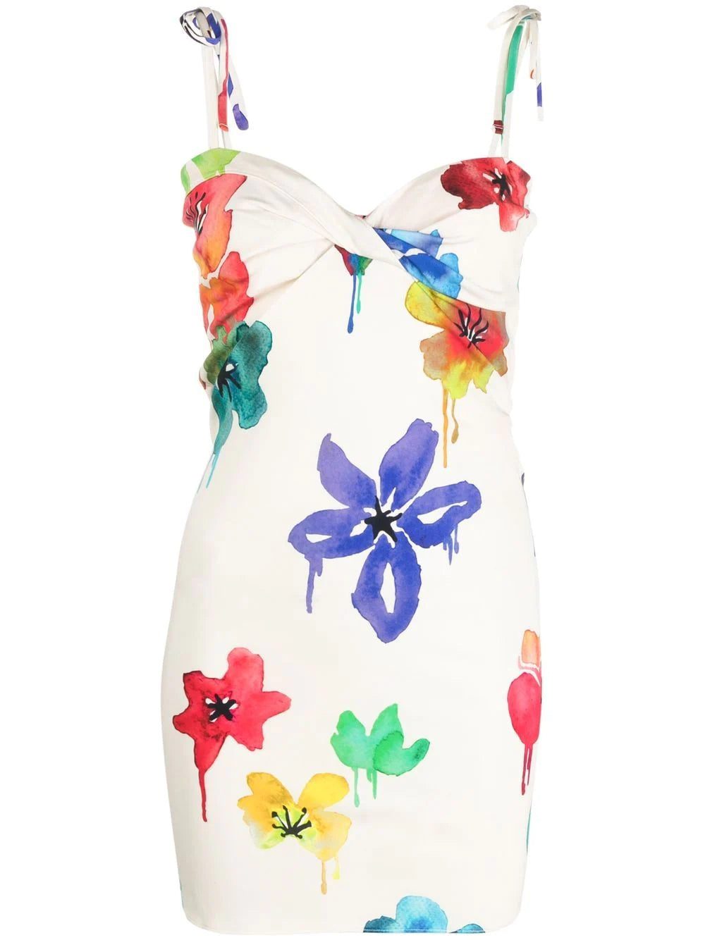 Printed with a floral motif, this dress from Off-White has a spirited visual identity. A twisted front section adds to the dynamic look of this sleeveless piece.