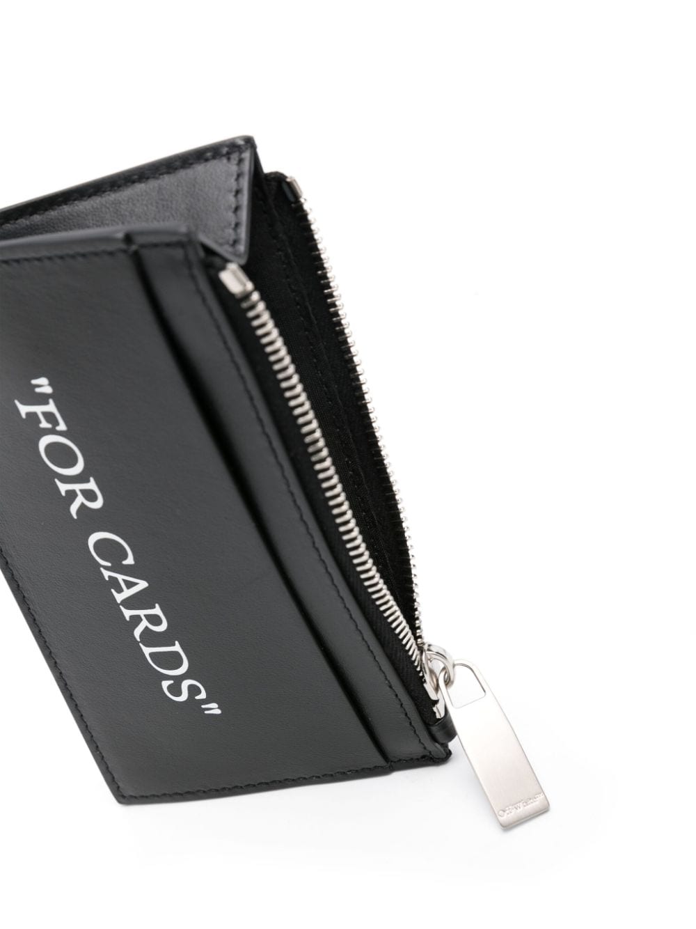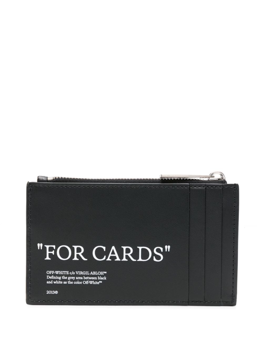 Quotation marks can be recognised as a signature feature that has been used consistently throughout the collections from Off-White. This black leather cardholder displays both to the front and rear with a white 'For Cards' print.