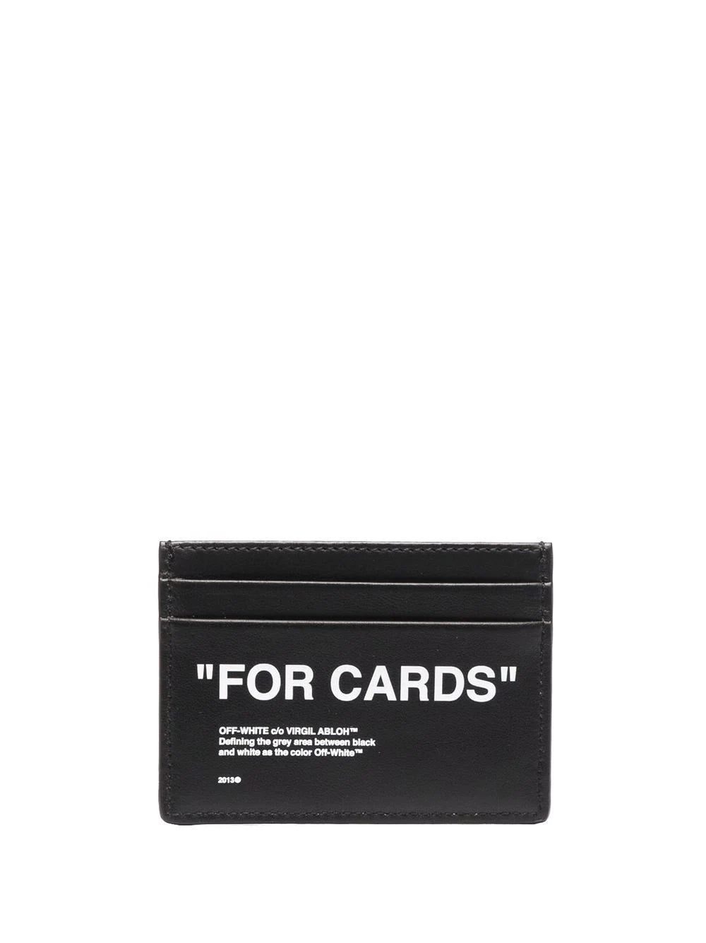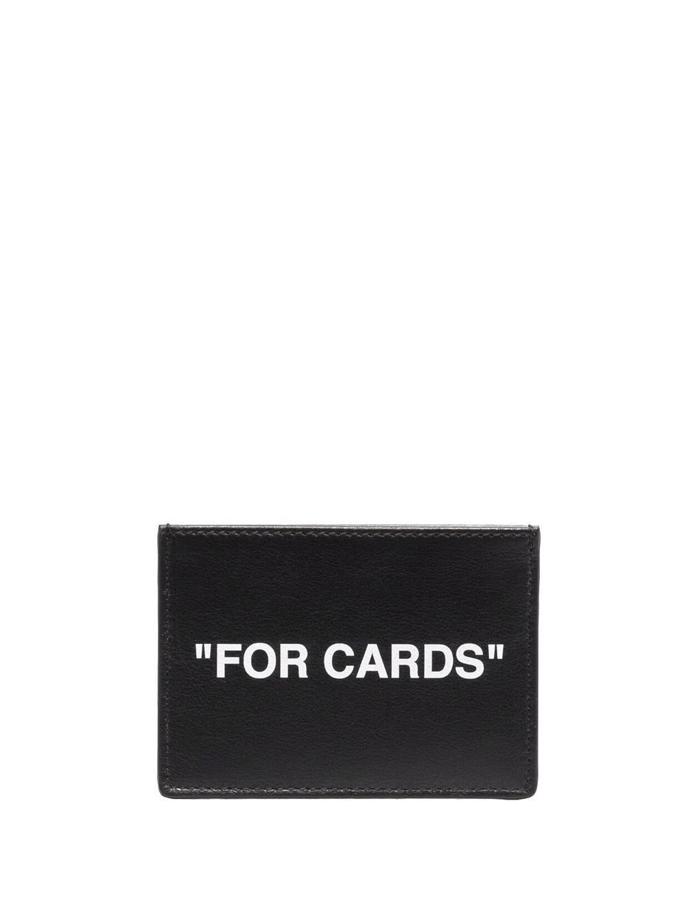Quotation marks can be recognised as a signature feature that has been used consistently throughout the collections from Off-White. This black leather cardholder displays both to the front and rear with a white "For Cards" print.