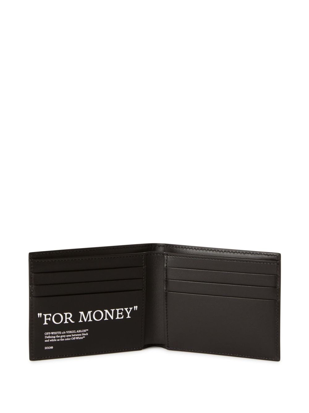 Quotation marks can be recognised as a signature feature that has been used consistently throughout the collections from Off-White. This black bi-fold wallet displays this motif in the form of a white "For Money" print both on the outside and inside.