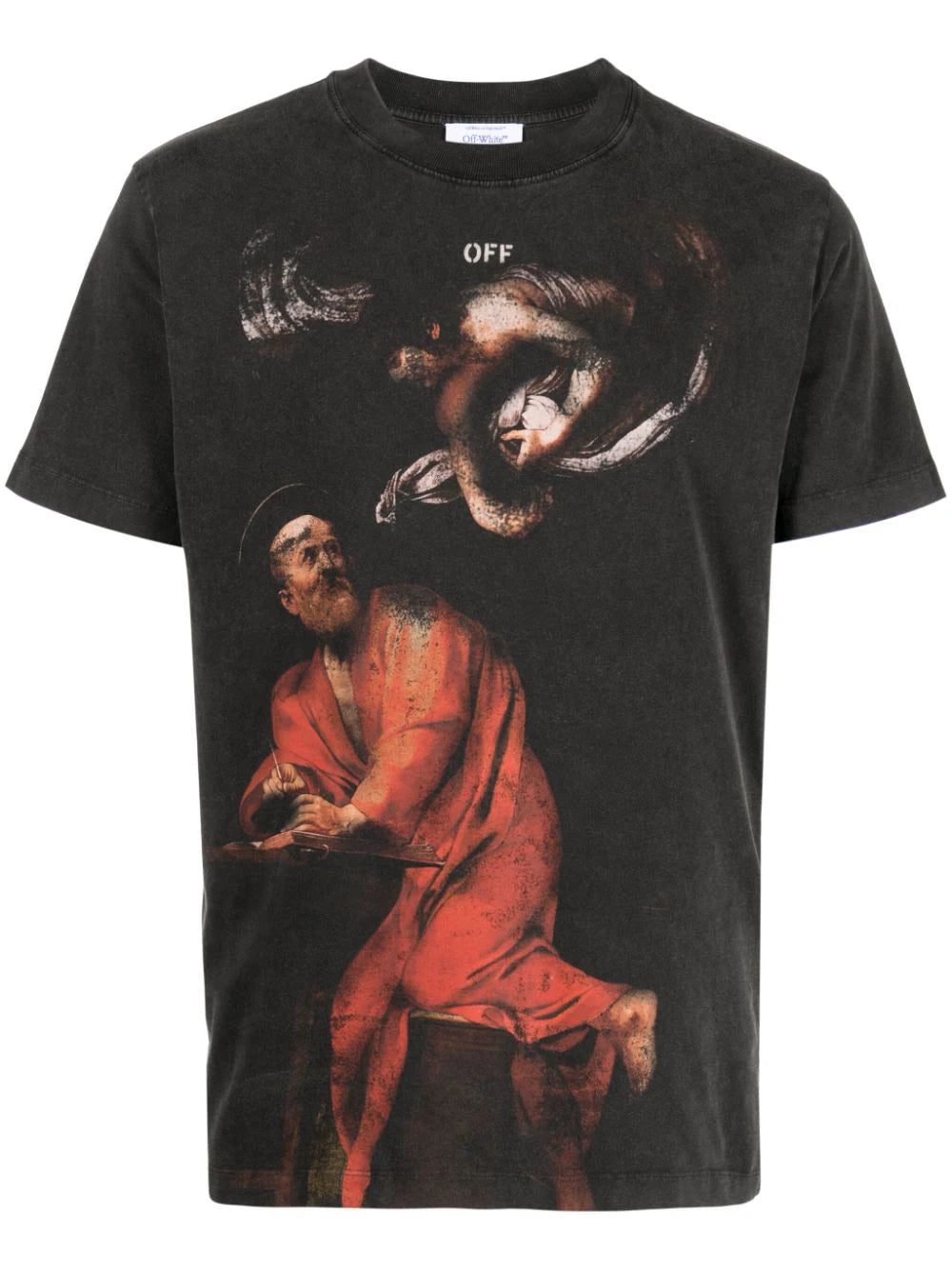Inspired by Renaissance paintings, this T-shirt from Off-White is printed with a graphic that depicts a painting. Tying in with current branding trends, it's detailed with the label's signature Arrows motif at the nape.