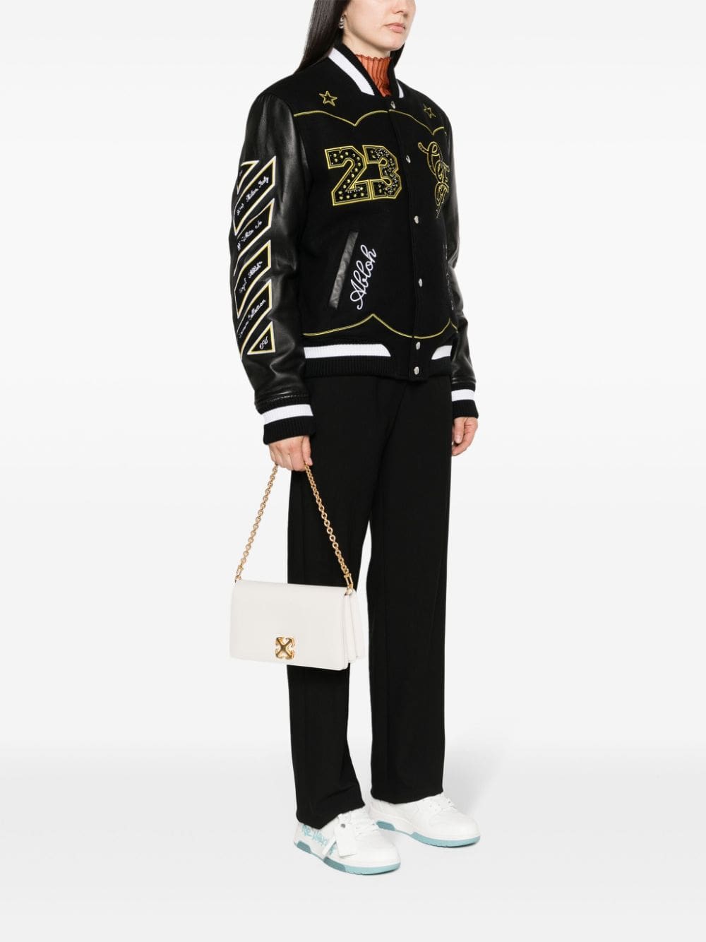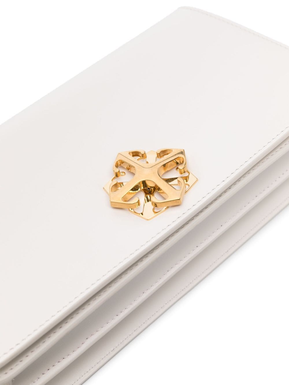 Off-White puts a literal twist on its signature Arrows emblem – the gold-tone one at the front of this Jitney 1.7 shoulder bag is cleverly designed to rotate. It’s crafted from white leather to a structural accordion silhouette and opens to a partitioned burgundy interior.