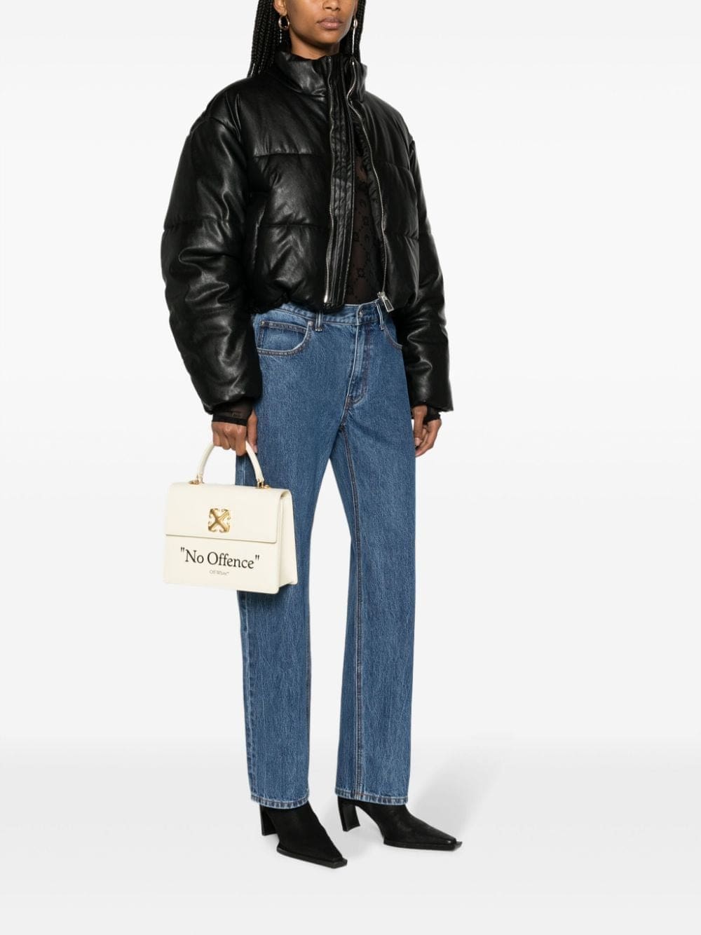 Off-White's Jitney bag is a signature for the brand that's distinguished by its structured silhouette. This iteration is decorated with a slogan print on the front and the iconic Arrows logo plaque.