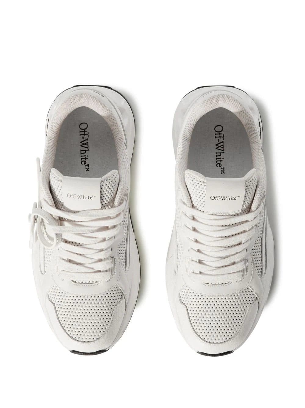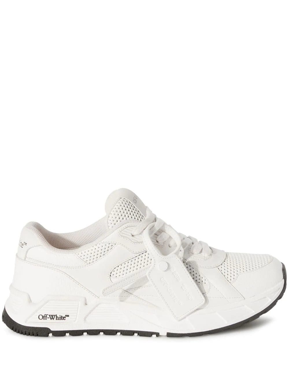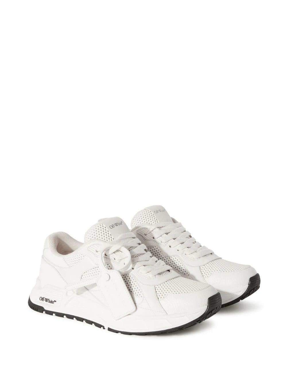 • Off-White draws inspiration from retro sports aesthetics to create these Kick Off sneakers. Presented in a fresh white hue, they combine smooth leather accents with breathable mesh inserts, while a debossed Zip Tie tag offers an unmistakable branded touch.