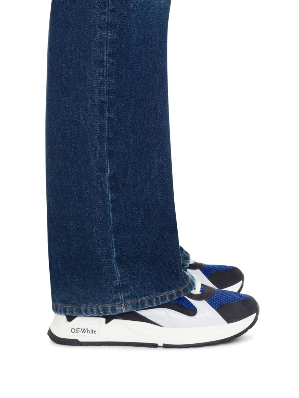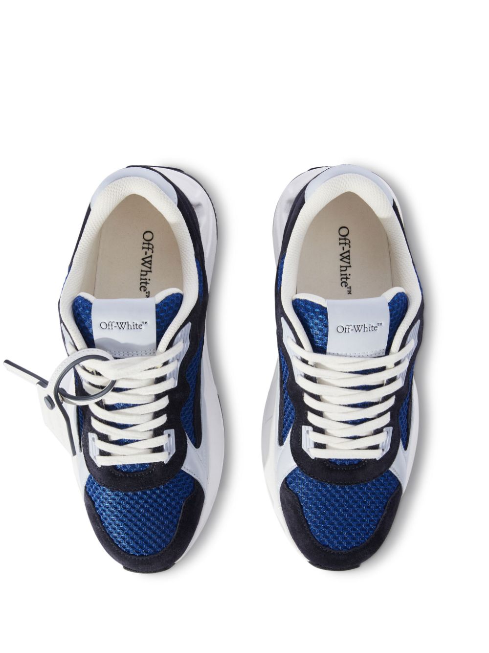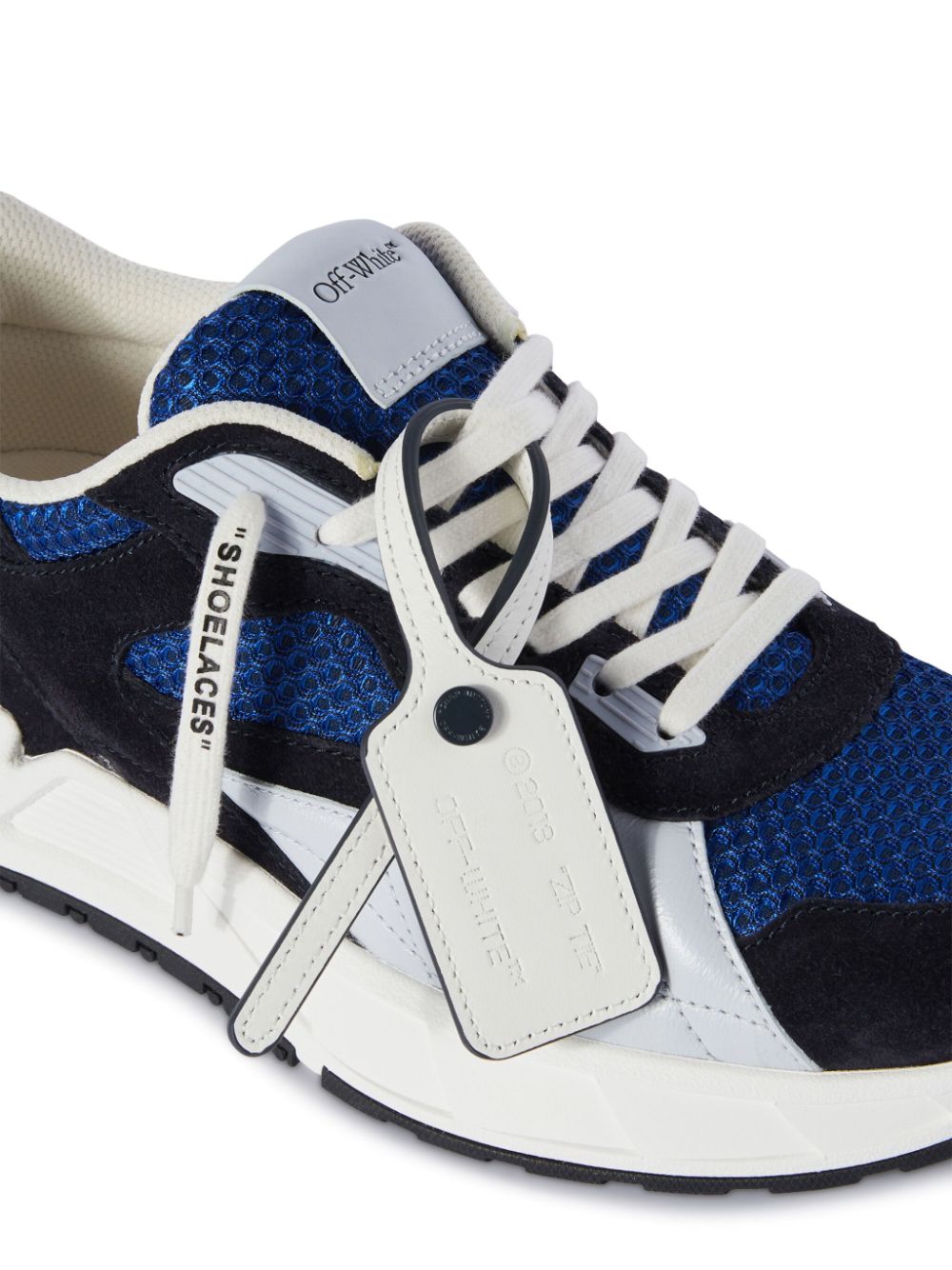 Off-White draws inspiration from retro sports aesthetics to create these Kick Off sneakers. Presented in a dark and light-blue colourway, they combine smooth suede and leather accents with breathable mesh inserts, while a debossed Zip Tie tag offers an unmistakable branded touch.