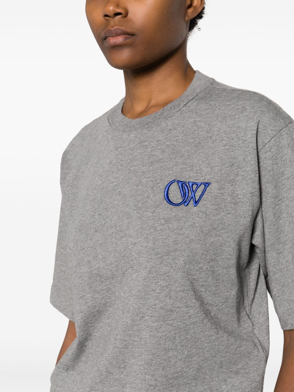 This T-shirt from Off-White is cut from cotton to a relaxed drop-shoulder silhouette and is embroidered with the brand's initials in contrasting blue threads.