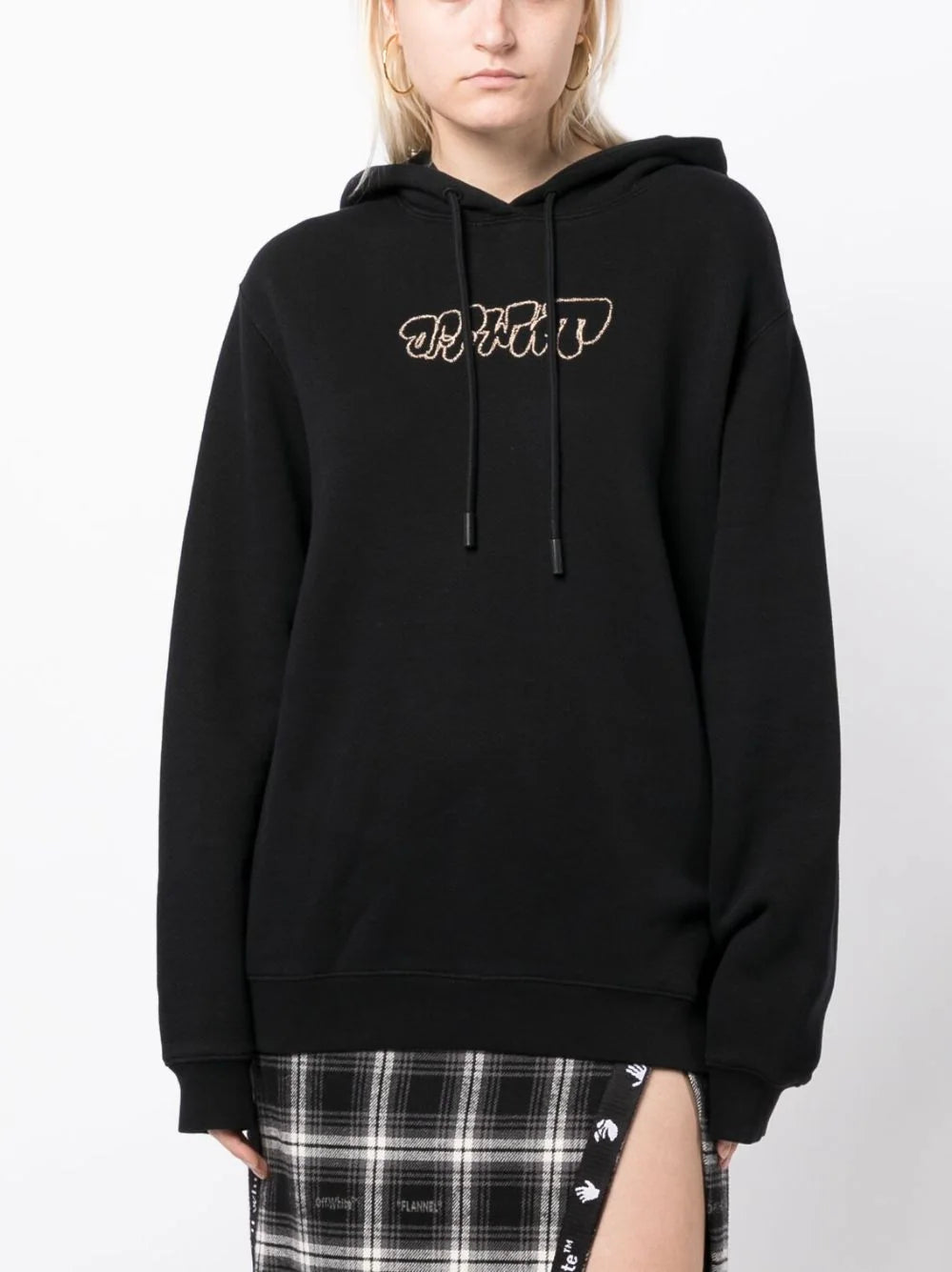 Off-White logo-embroidery rib-trimmed hoodie