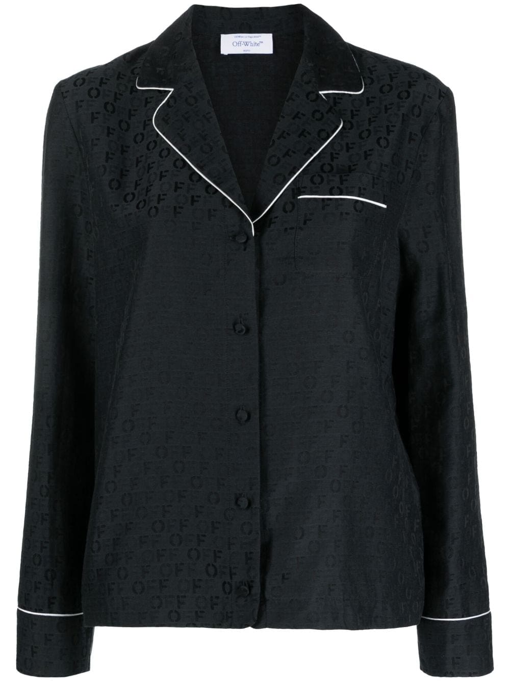 Off-White puts a signature spin on this pyjama shirt, branding it with all-over logo jacquard lettering. Contrasting piped trims, notched lapels and a patch chest pocket stay true to the prototype design.