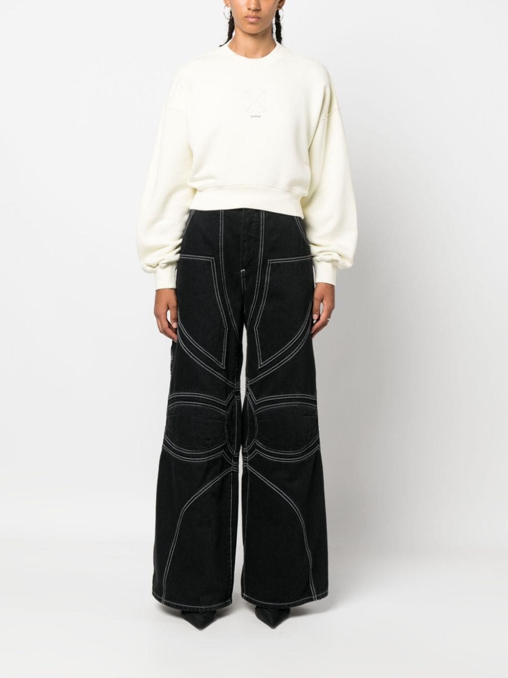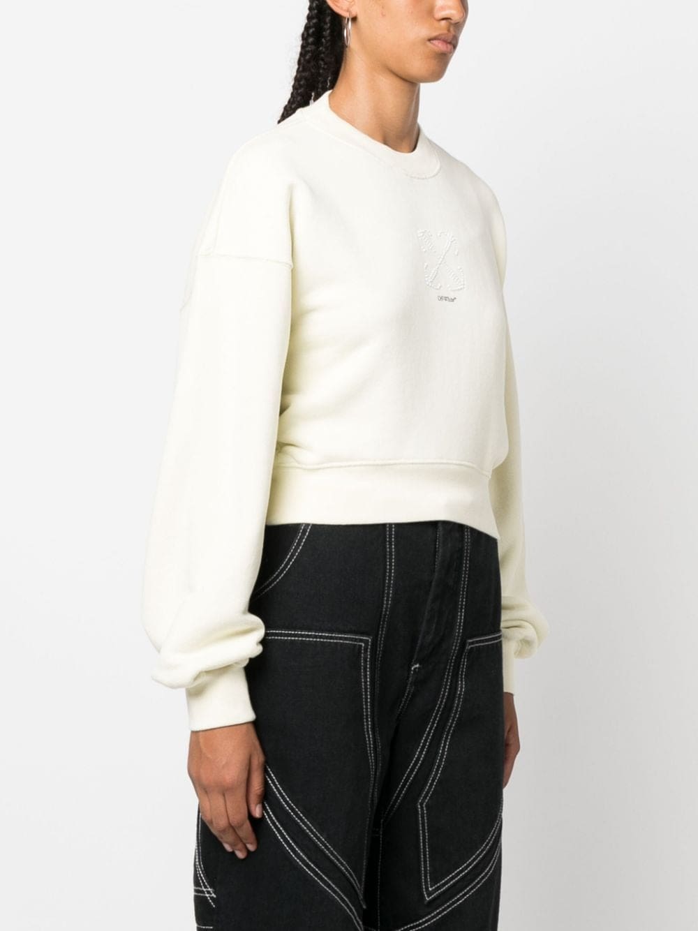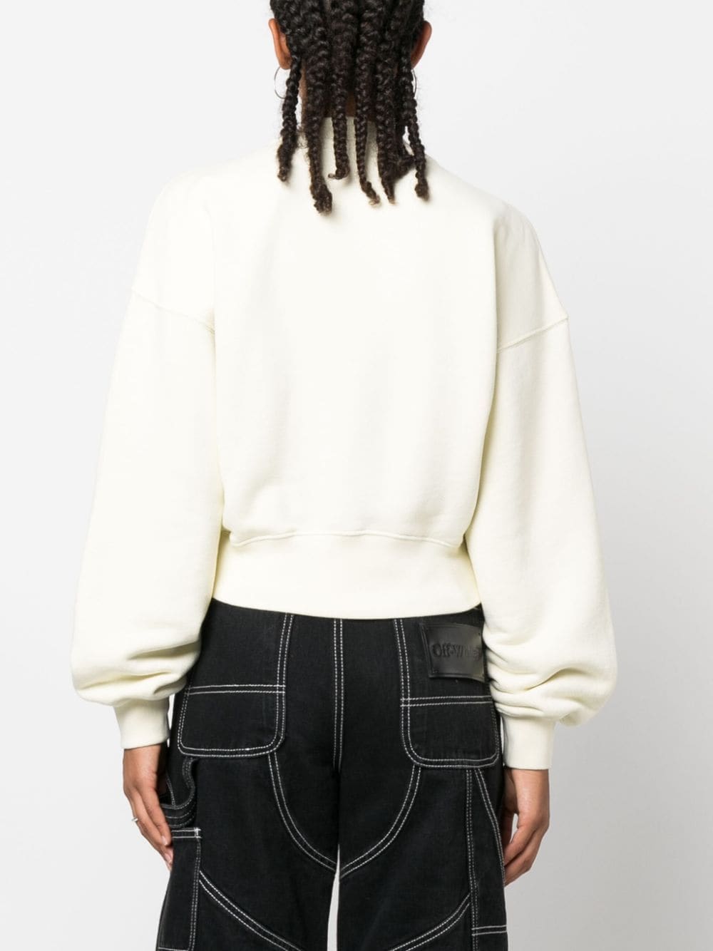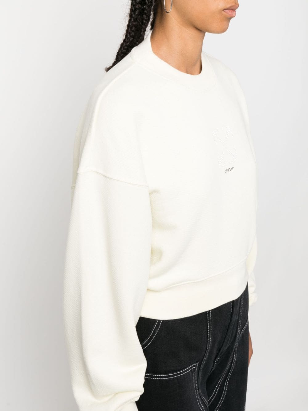 This cotton sweatshirt from Off-White showcases the brand's iconic Arrows motif, complemented by a subtle logo print on the front. The crew neck and drop shoulder design accentuate the contemporary nature of the style.