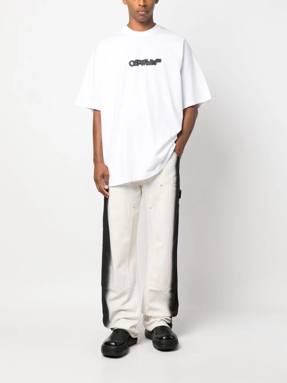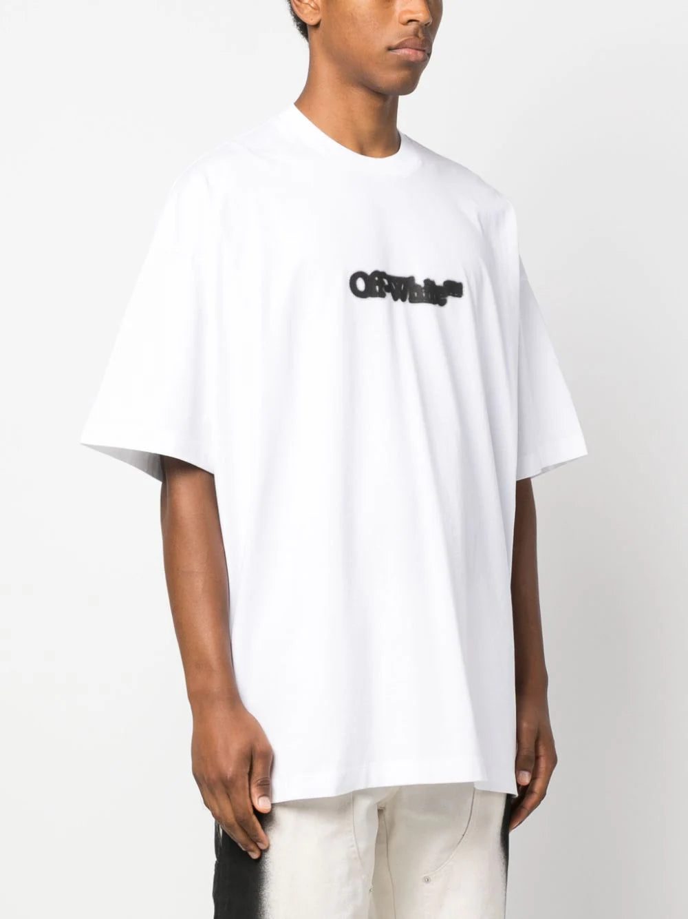 Luxury streetwear brand Off-White presents this soft cotton T-shirt punctuated with a blurred iteration of its iconic logo in the centre of its relaxed silhouette.