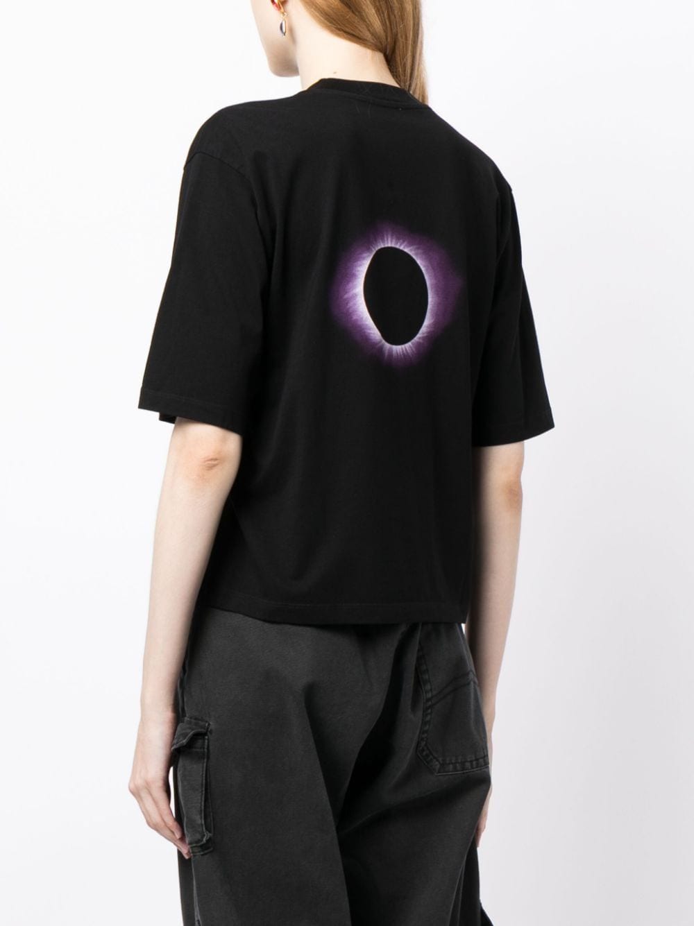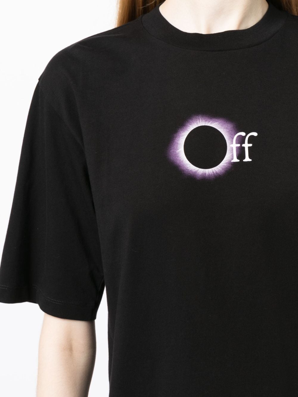 Continuing its seasonal astronomy ethos, Off-White presents this black T-shirt featuring an eclipsed OFF logo print. Crafted from soft Portuguese cotton, it is designed with a relaxed fit for a signature laid-back style.