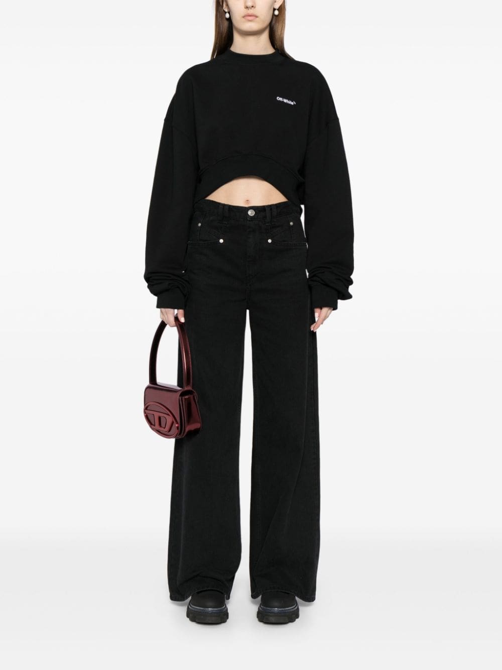 A fine showcase of Off-White's casual style, this cropped sweatshirt is cut to a relaxed drop shoulder silhouette with ruching at the sleeves.