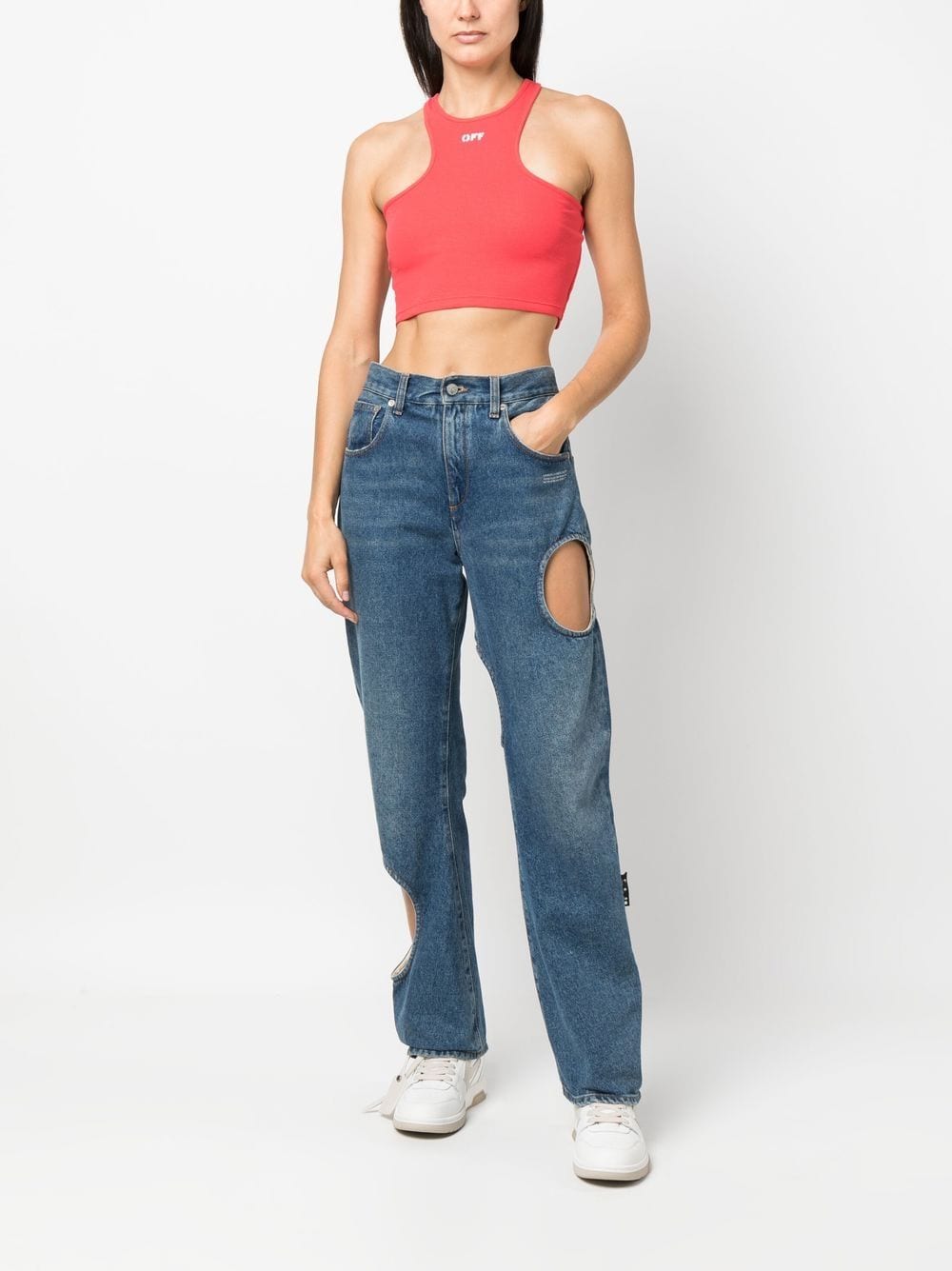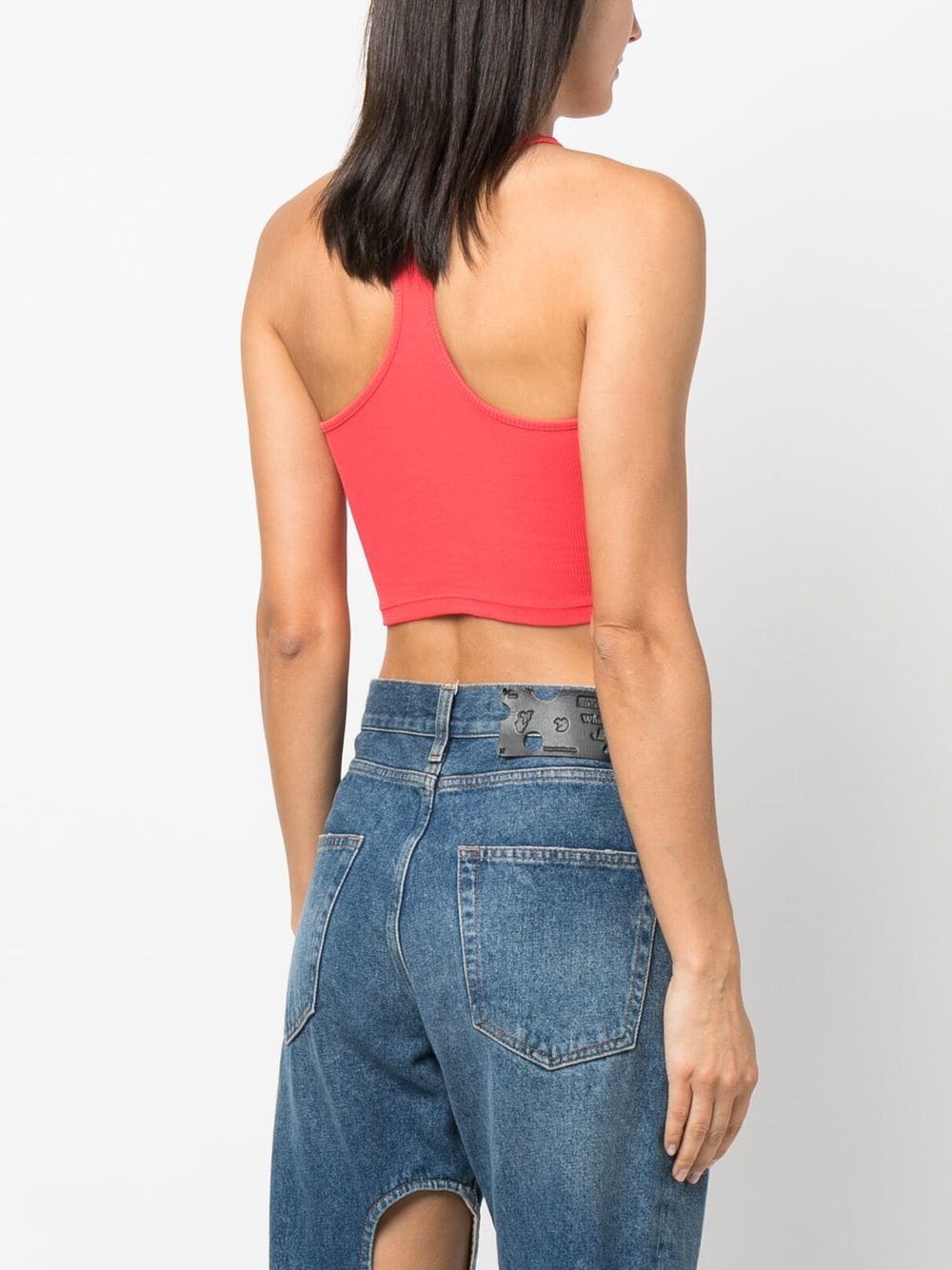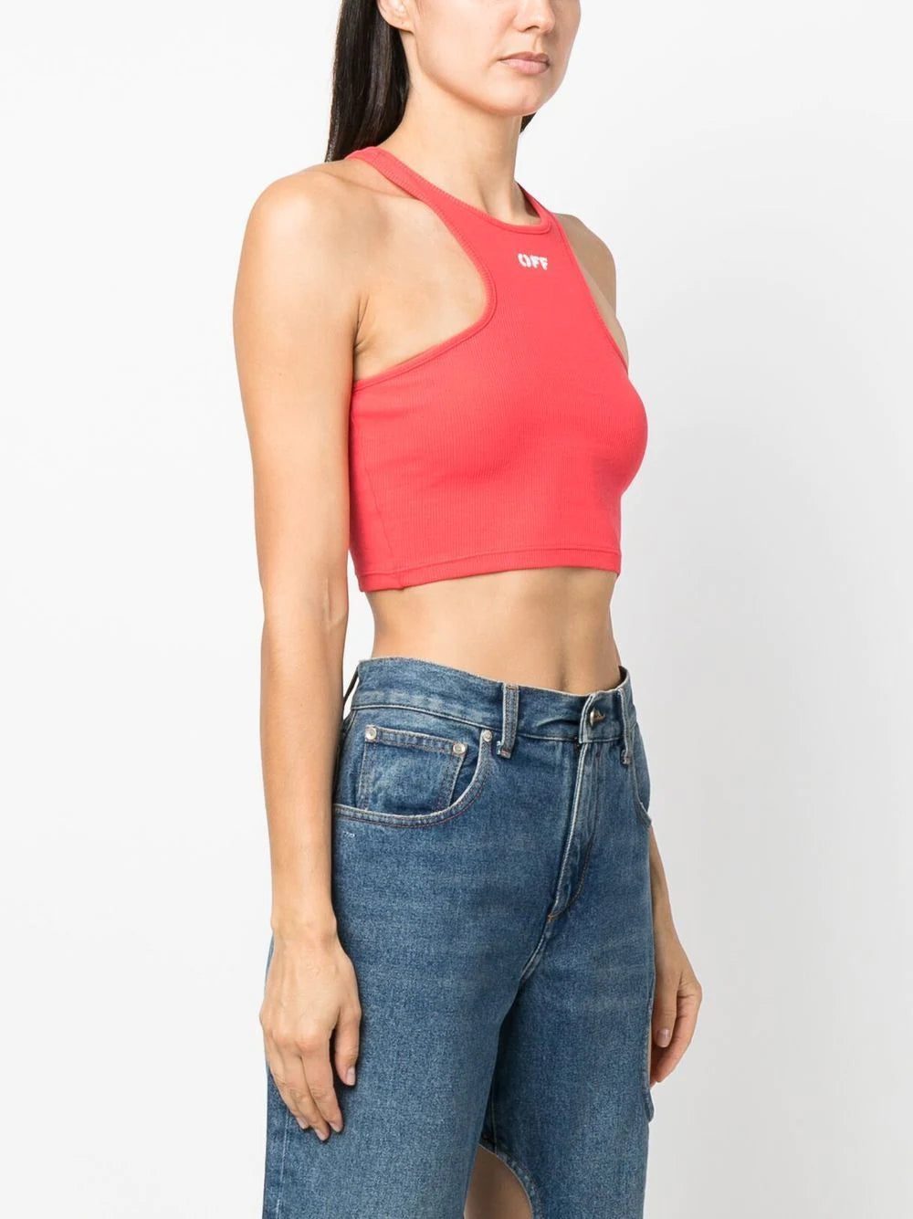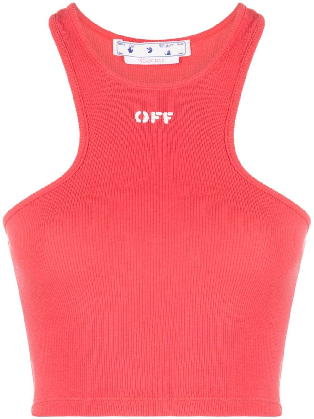 Off-White's crop top is reminiscent of 1990s tank styles. Designed with a racer front and back silhouette for a sporty feel, it's minimally decorated with a logo print at the chest.