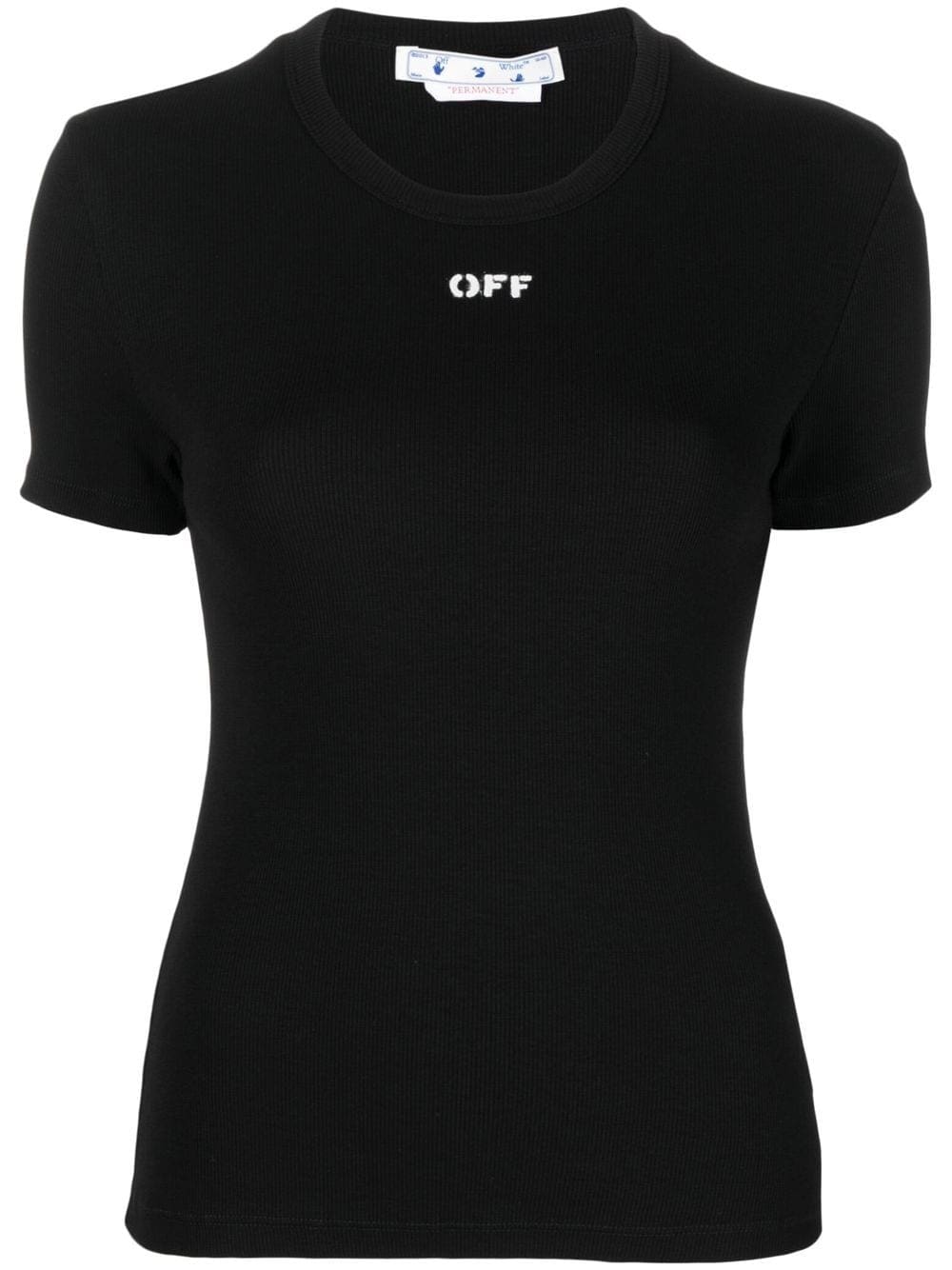 Off-White takes a pared-back approach to branding, simply accenting this basic ribbed T-shirt with a minimal OFF logo on the front. The stretch construction helps accentuate the contemporary fitted silhouette.