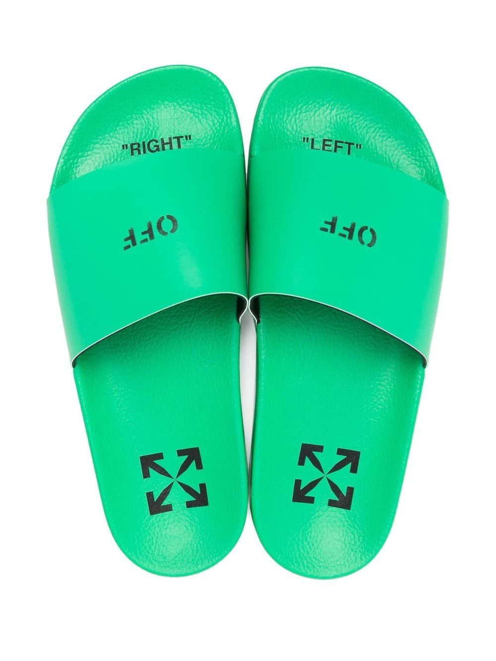 Printed with the brand's lettering on the front, these Off-White slides feature the label's signature explanatory motif, as each shoe is detailed with each foot it goes on.