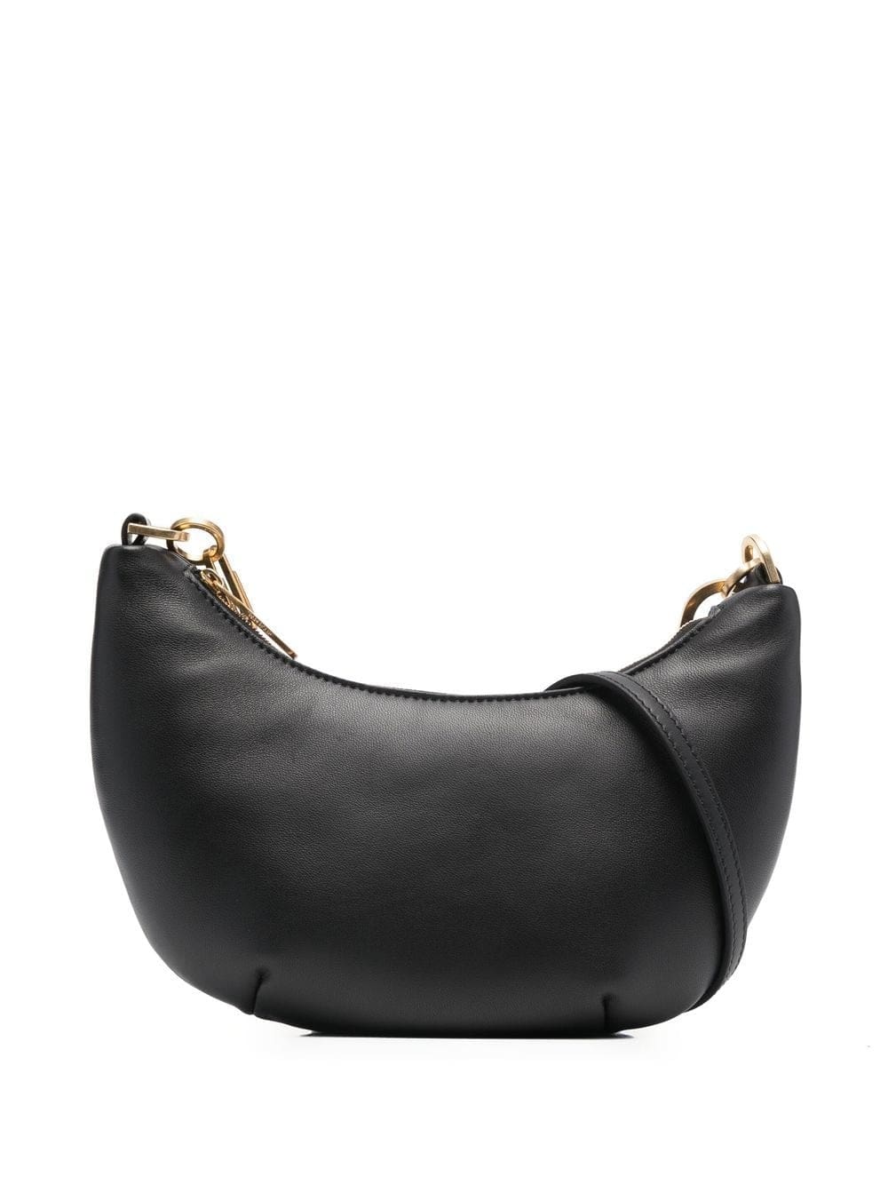 black calf leather logo stamp to the front gold-tone hardware top zip fastening single shoulder strap