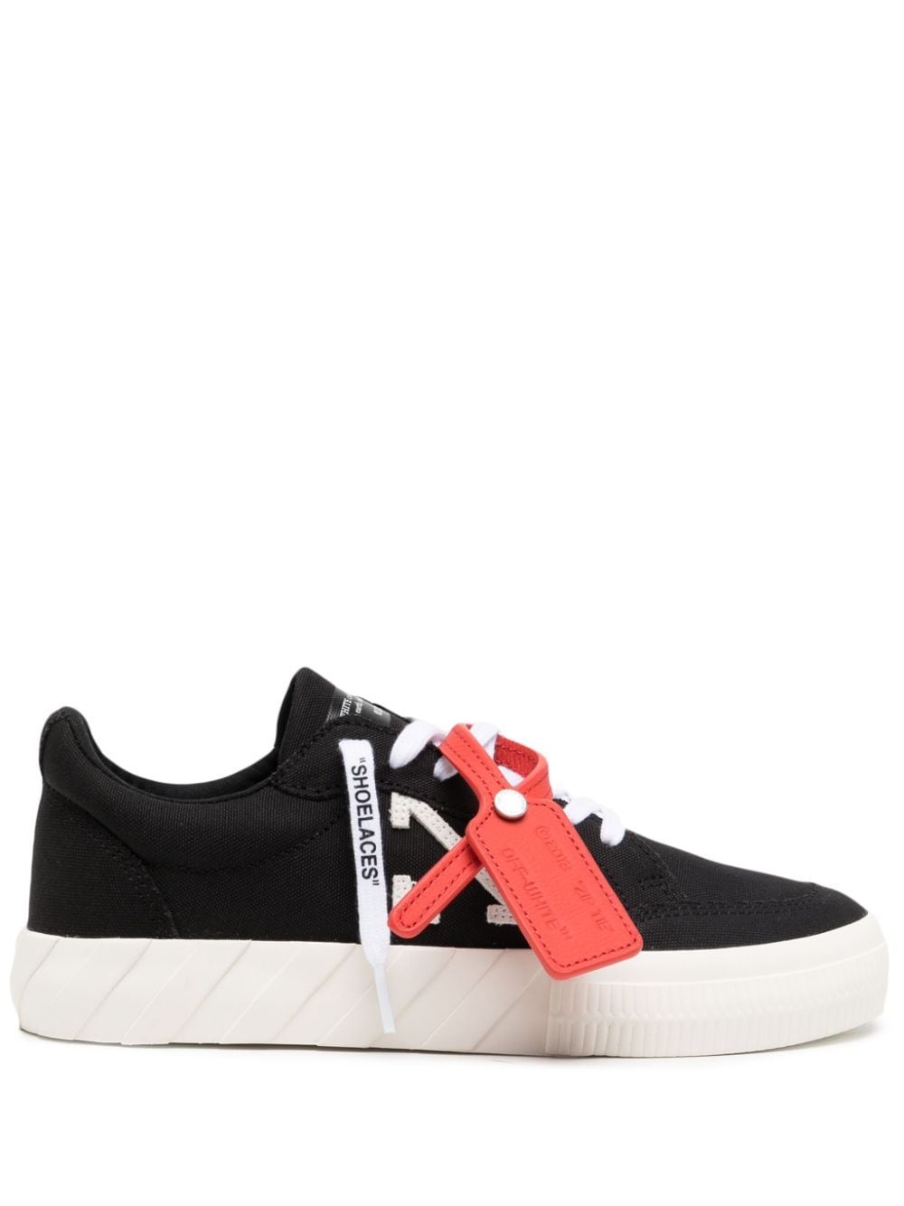 Distinctive elements such as the Arrows motif and signature Safety tag make these Low Vulcanised sneakers from Off-White instantly recognisable as the brand. Paired with a Diag-stripe at the sole, these identifiable features highlight the brand's signature streetwear influences.