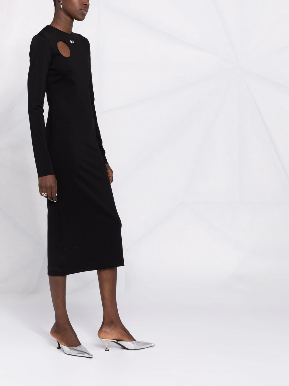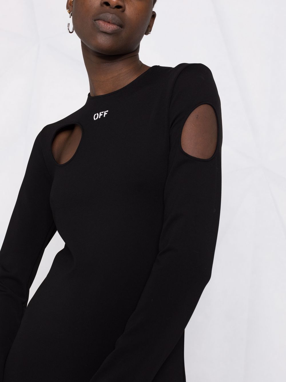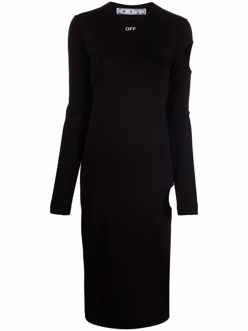 A common theme throughout Off-White’s collections, the Metor motif is characterised by bold cut-out detailing, as seen in this black-hued dress. Alongside a chest logo, this pattern adds an unmistakable branded finish to this long-sleeved silhouette, offering a sense of charisma to its knitted design.