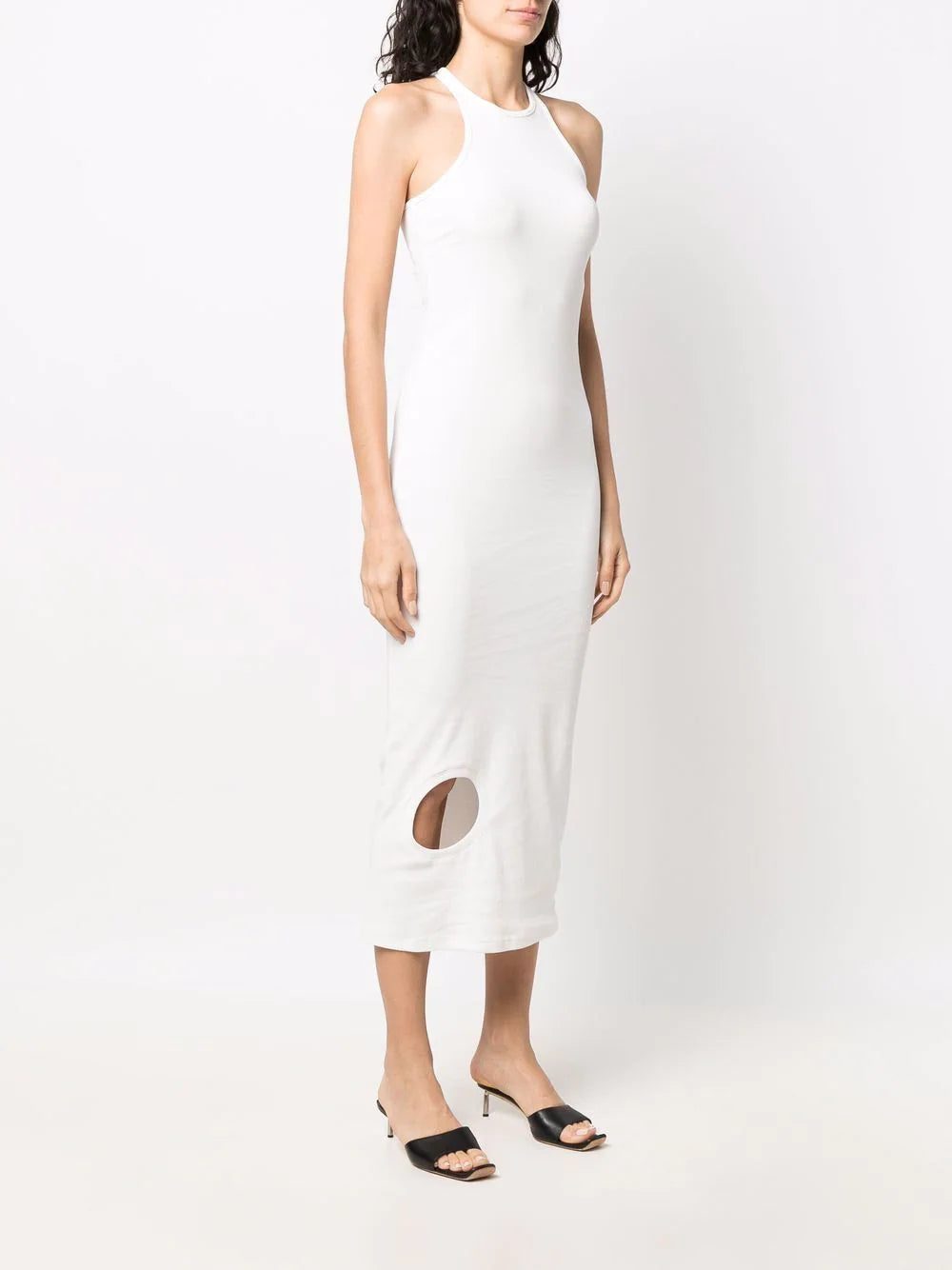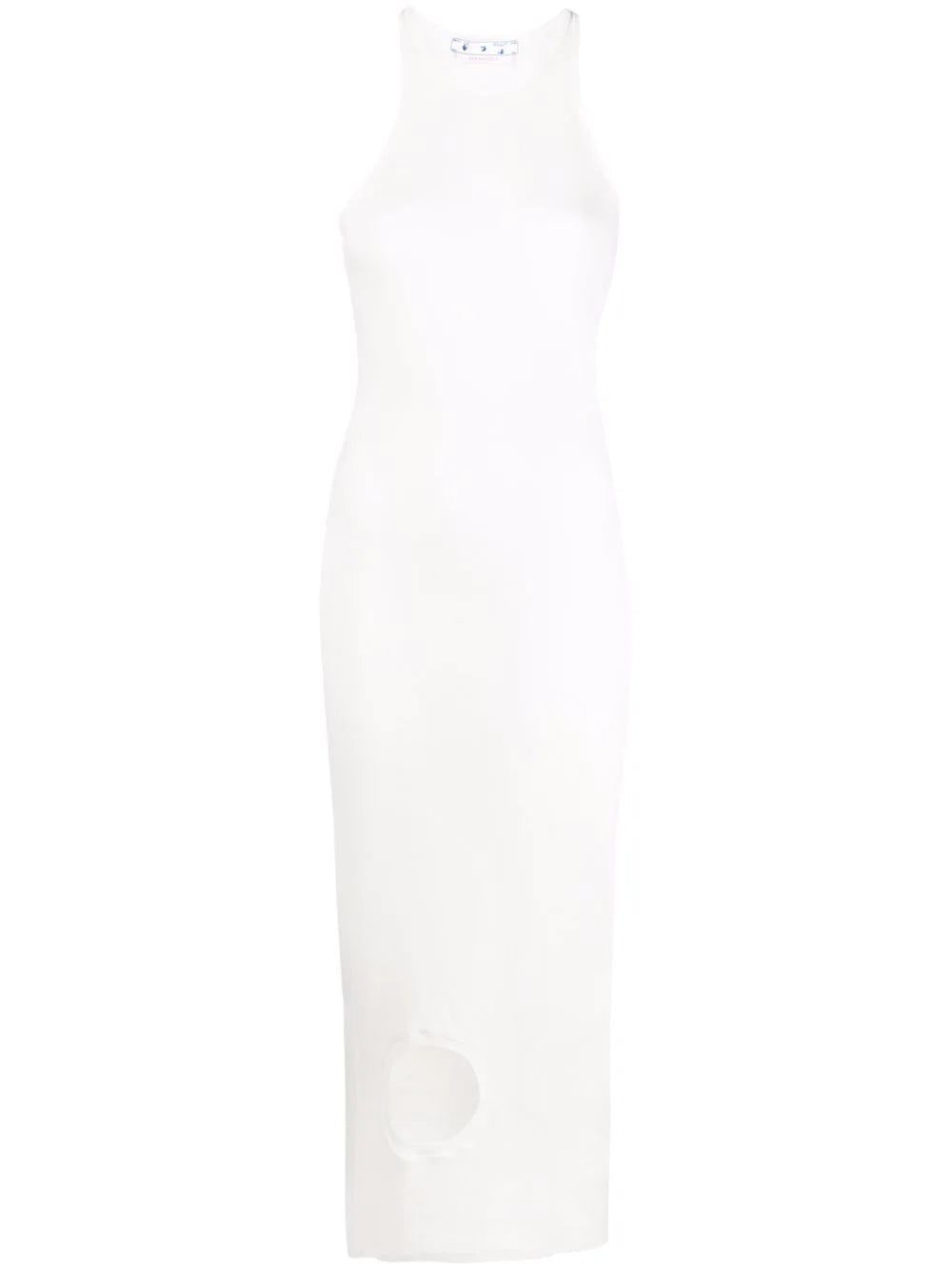 Inspired by a meteor shower for this collection, aptly titled 'Meteor', this dress from Off-White features round cut-out detailing across the design. This contemporary detail makes the garment instantly recognisable as the brand, whilst its tonal colourway adds a refined, minimalist edge.