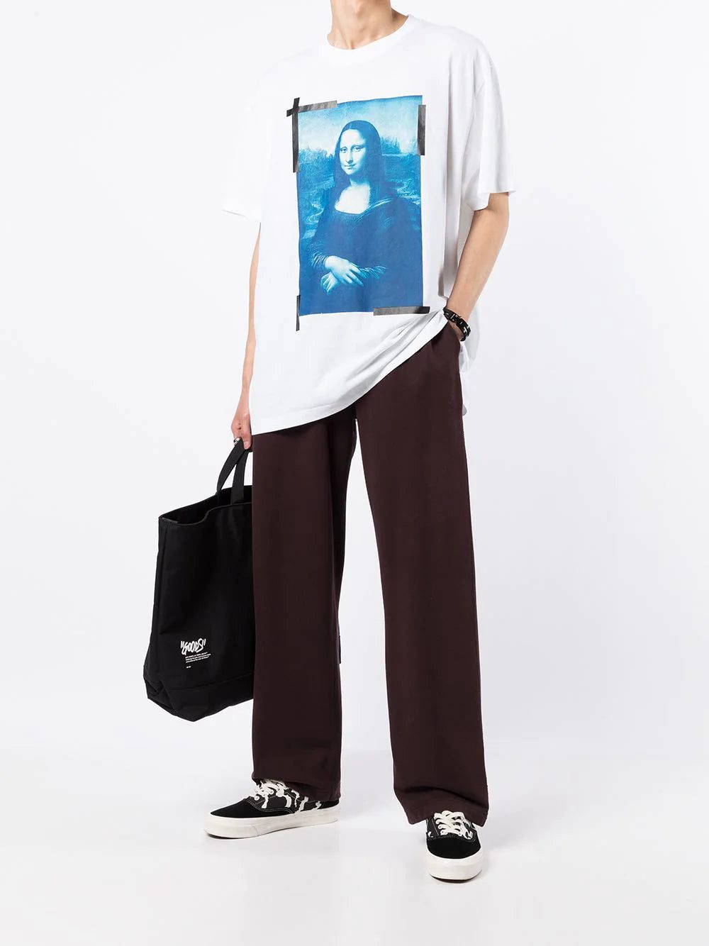 Off-White enhances this cotton T-shirt with bold graphics, creating an eye-catching look. A key brand print inspired by the late Virgil Abloh's penchant for merging art with streetwear, the Monalisa design appears throughout their collections, adding unexpected detailing.