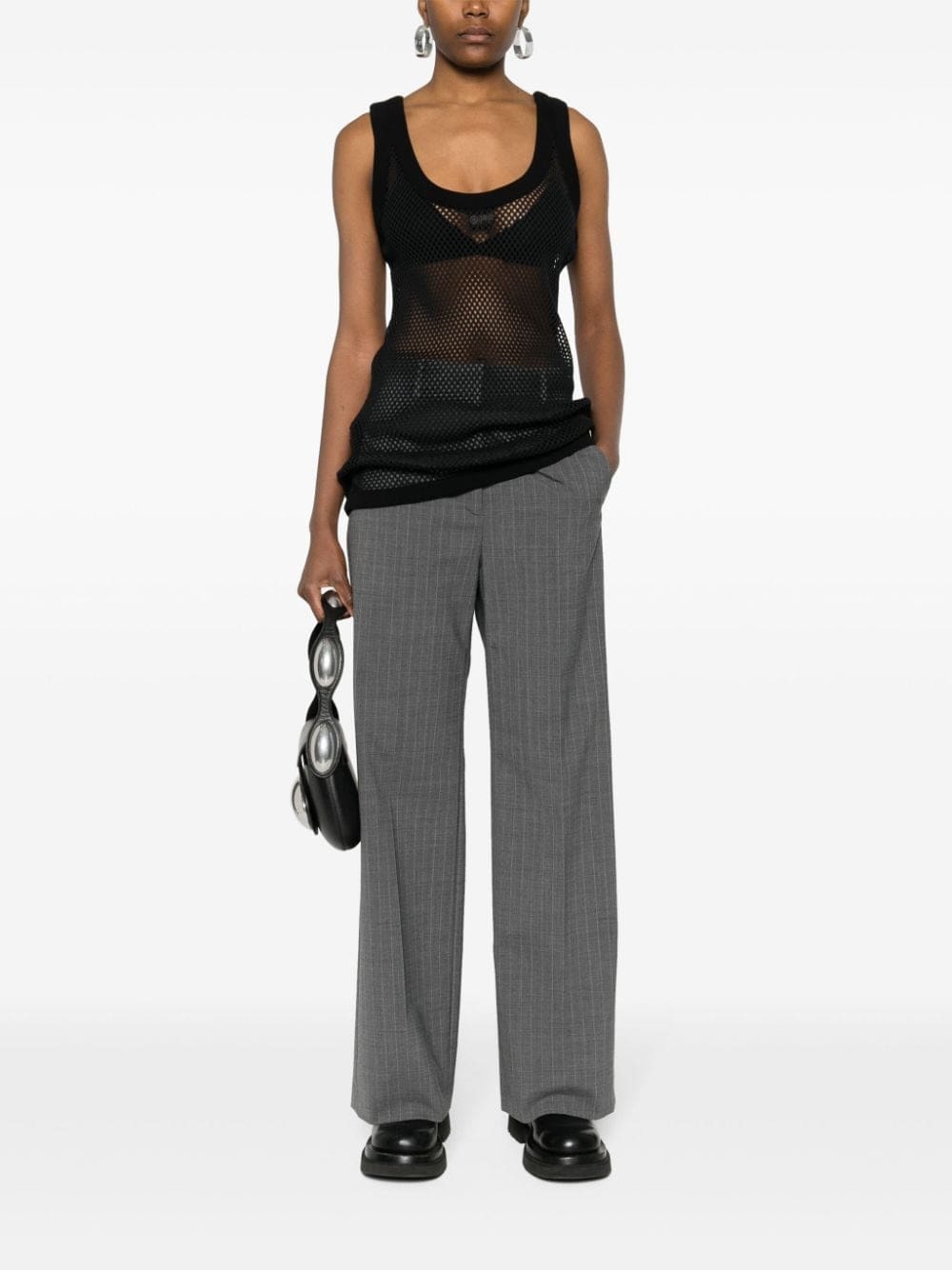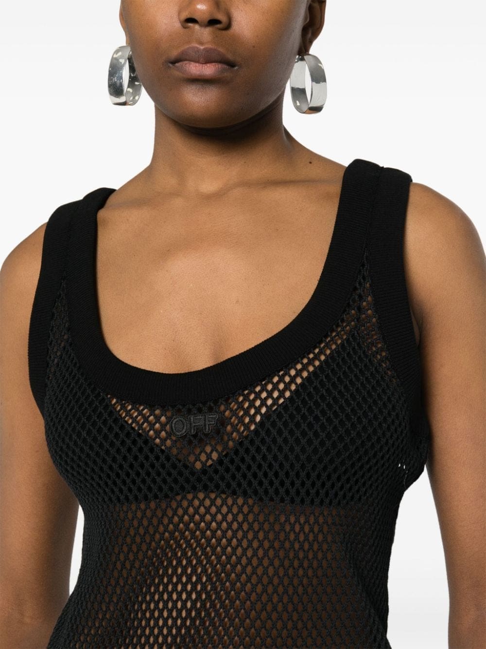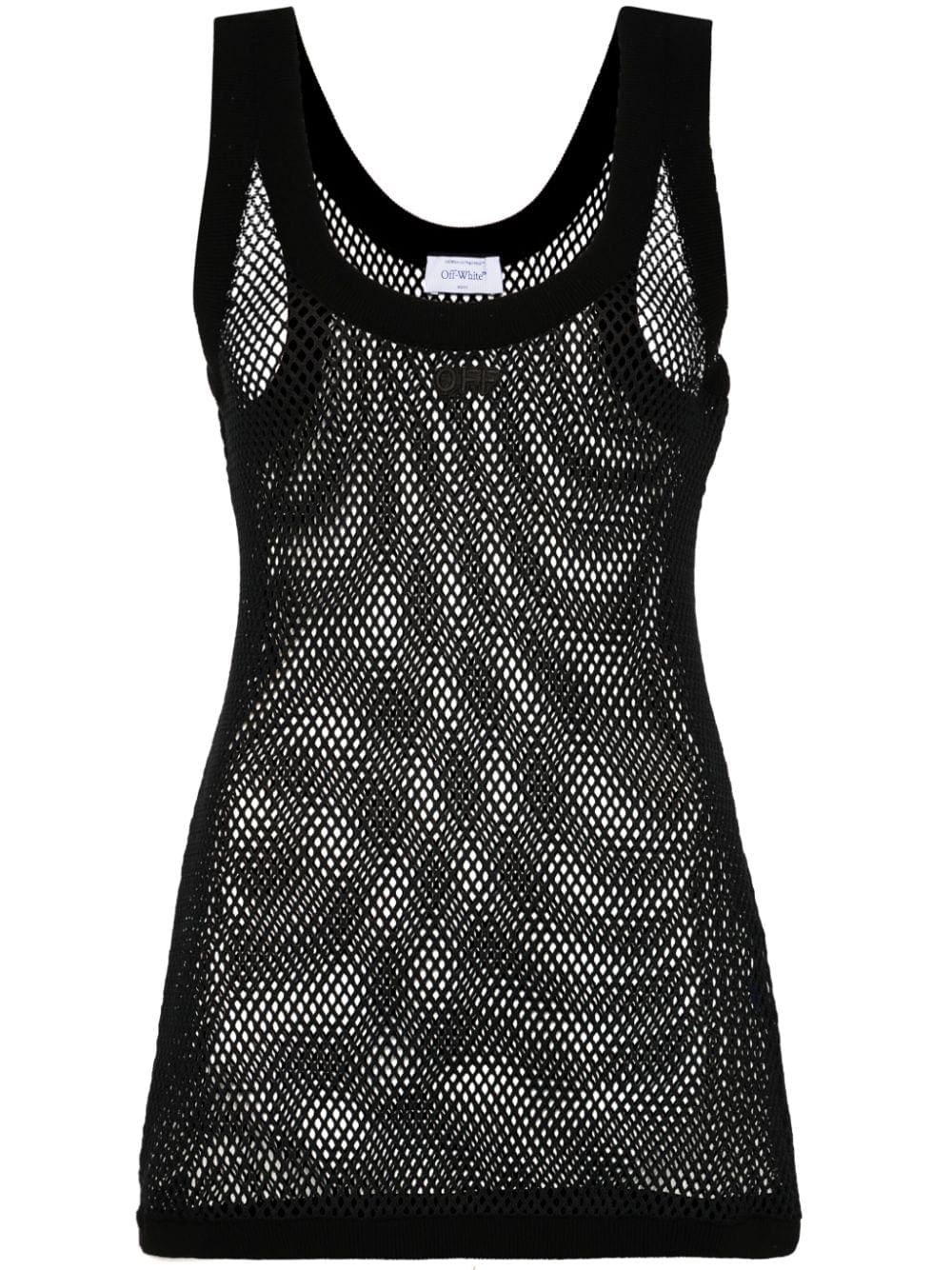 Known for creating avant-garde pieces with minimalist colours, Off-White presents this tank top. In classic black, it features a netted design.