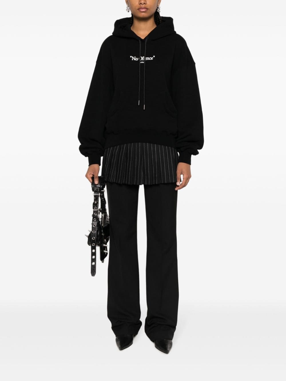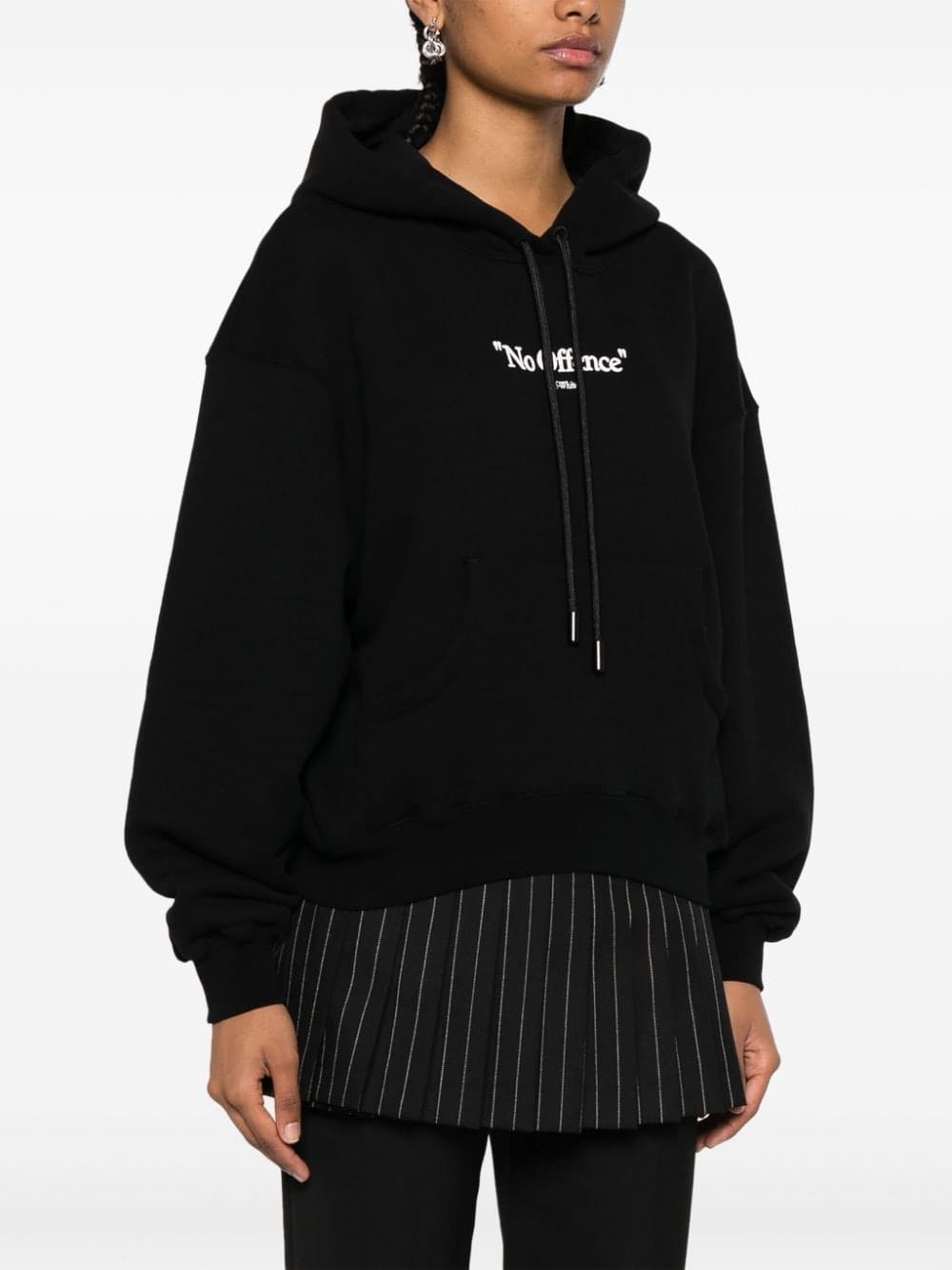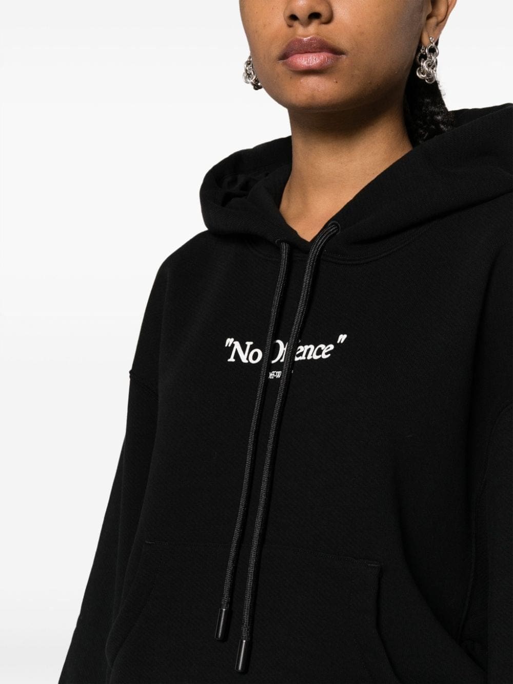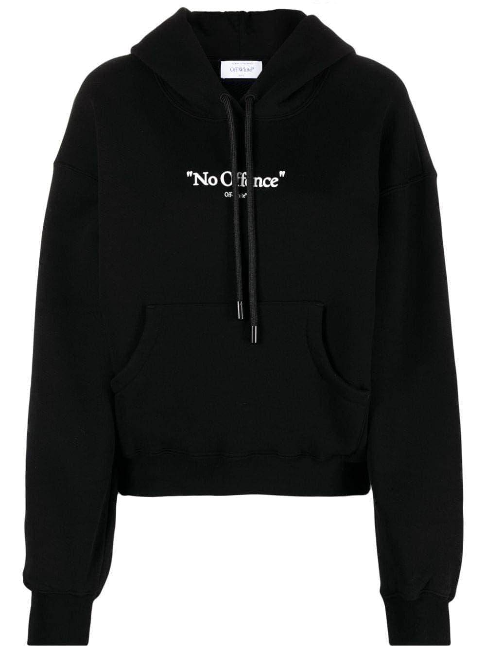 Off-White exhibits its streetwear style through this black cotton hoodie. Crafted in Portugal, it boasts a laid-back silhouette accented with the iconic slogan 'No Offence' printed on the chest.