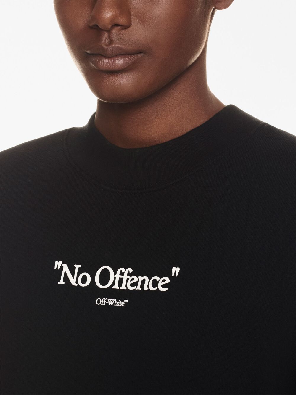 Off-White continues to express its affinity for effortless casuals, as shown on this ribbed crew neck sweatshirt. Boasting a relaxed fit and crafted from cotton, the brand’s logo and slogan print reading 'No Offence' is printed on the front in contrasting white.
