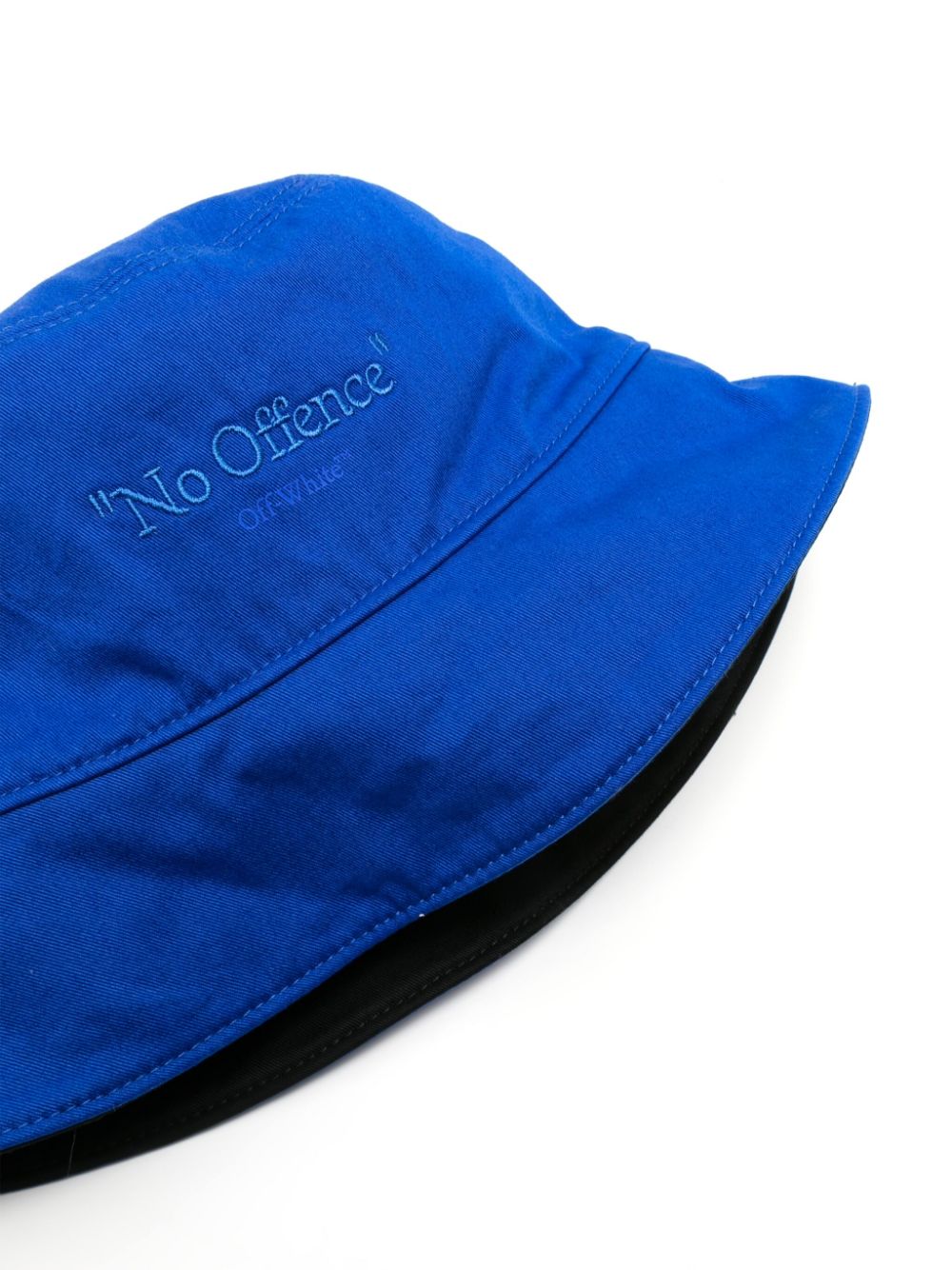 One of the features of its streetwear-inspired aesthetic, Off-White's iconic slogans decorate even the most casual pieces. This black and blue reversible bucket hat is a fine example, boasting the latest "No Offence" motif embroidered on the front.
