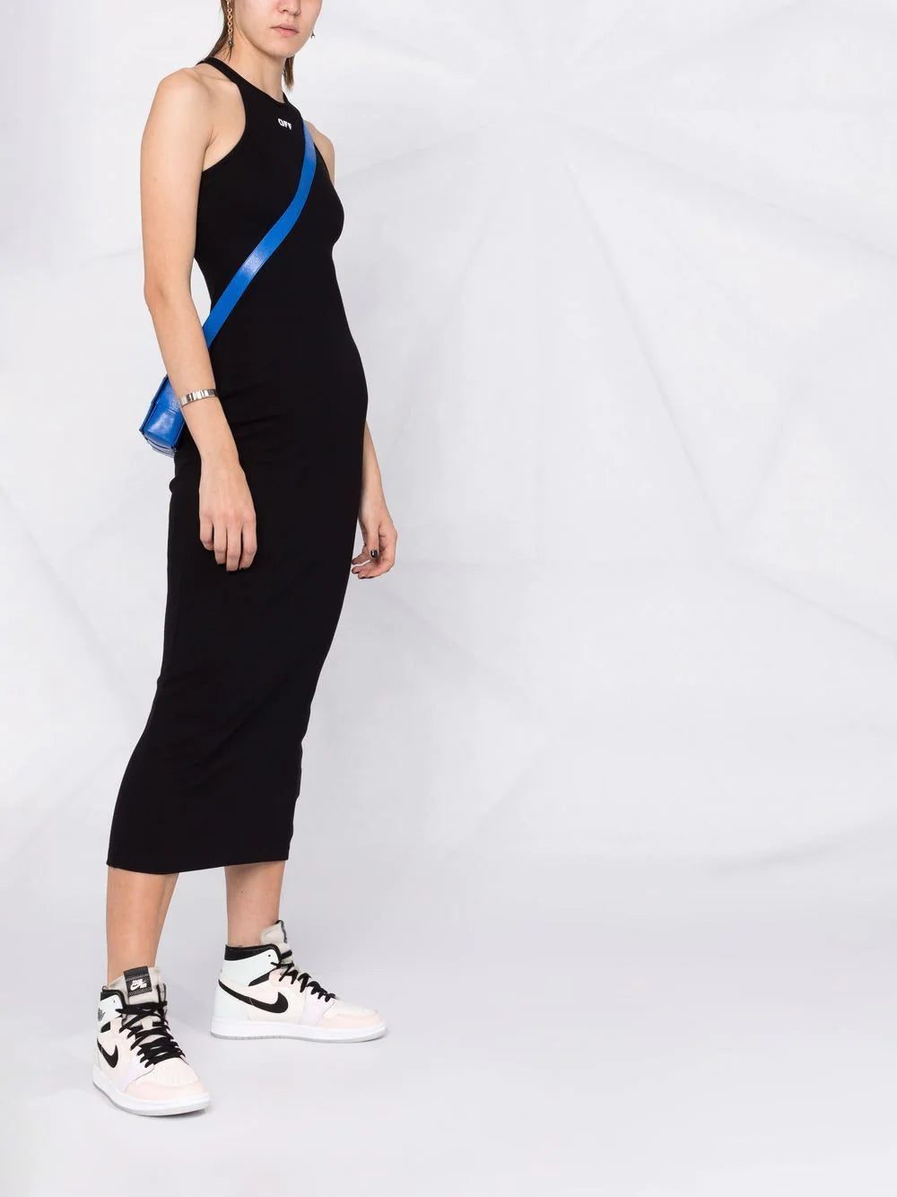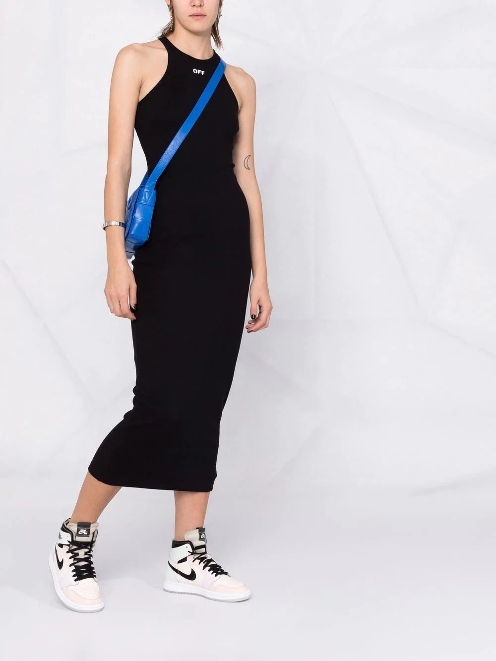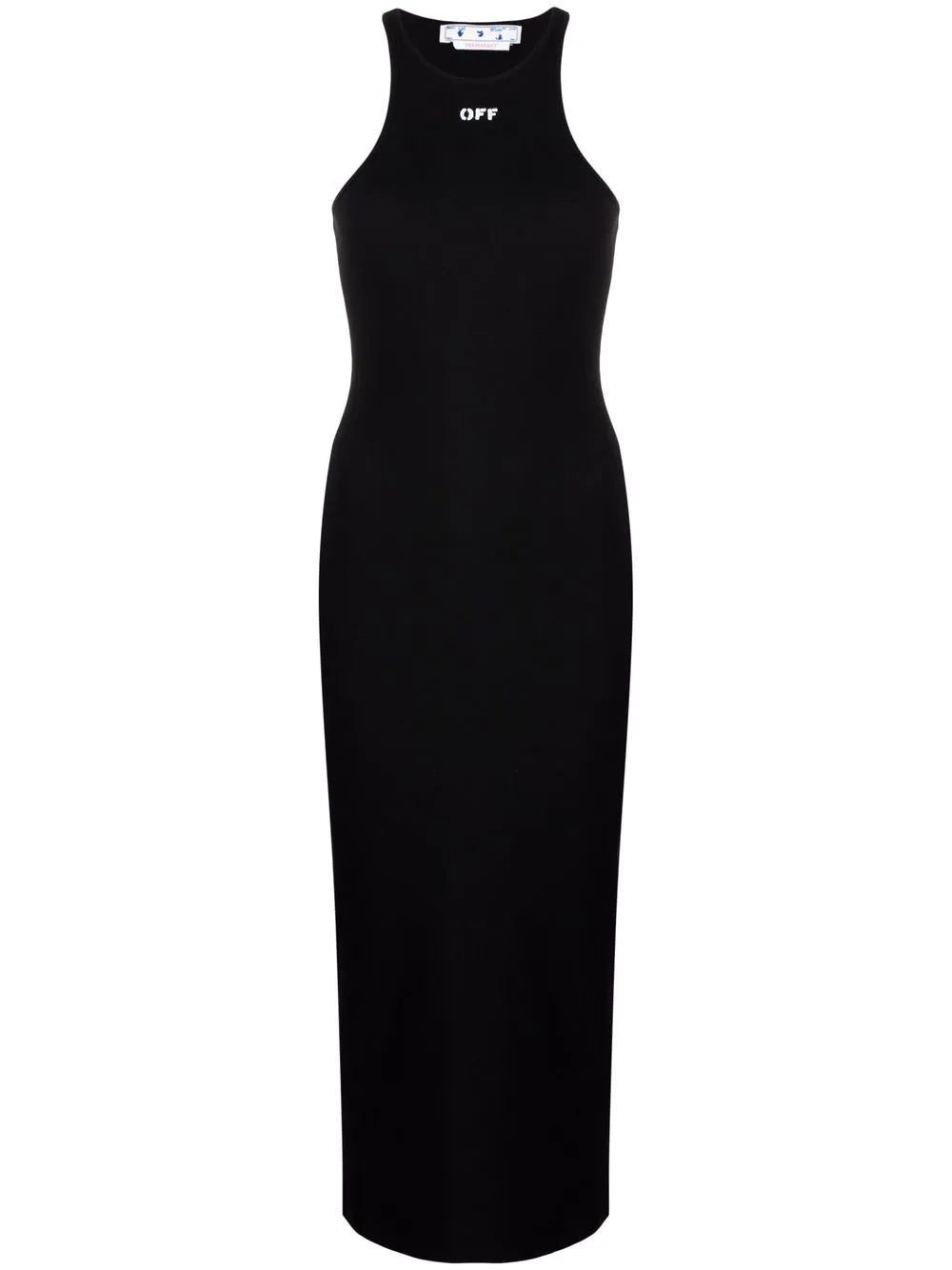 Off-White presents a pared-back look with this ribbed dress. Crafted from a soft stretch cotton, it boasts an understated but instantly recognisable logo print to the front.