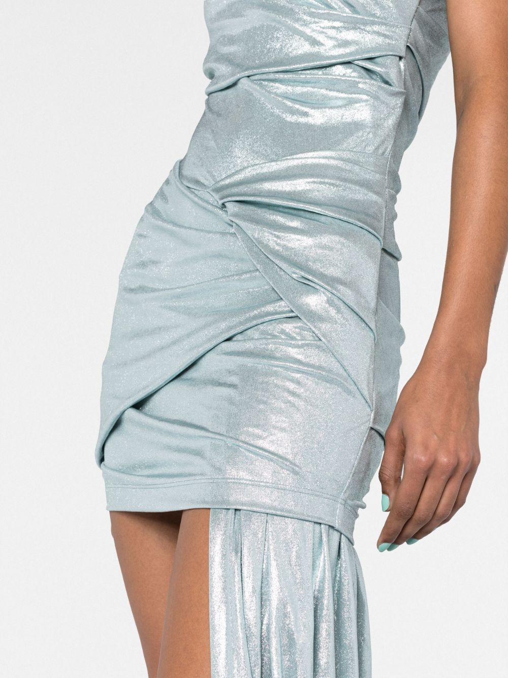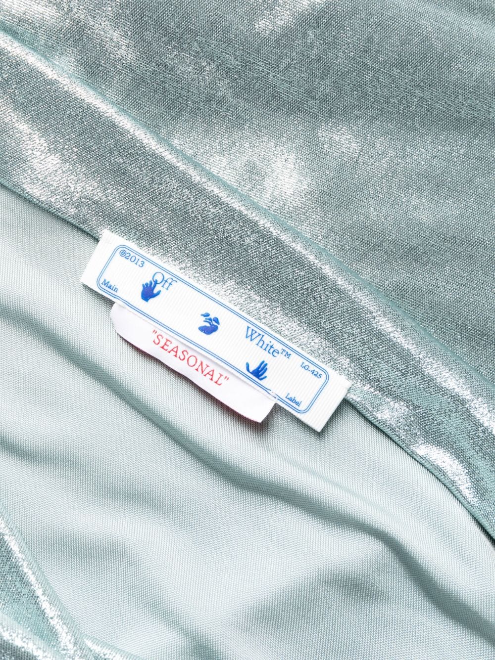 This minidress from Off-White is enhanced by a metallic effect and features a one-shoulder silhouette that cascades into an asymmetric hemline.