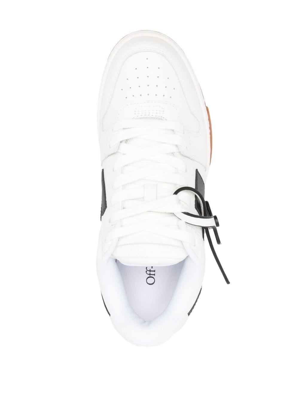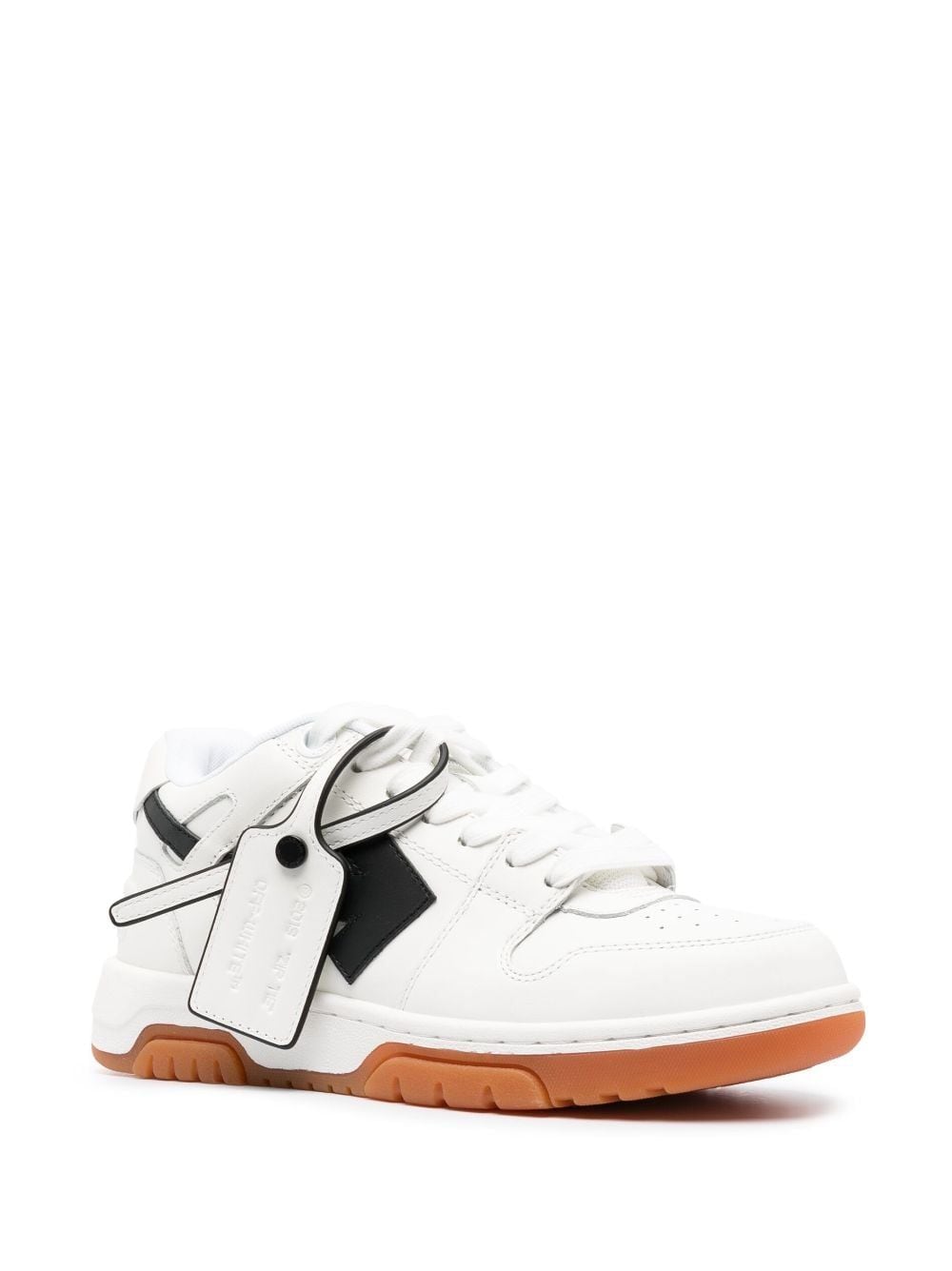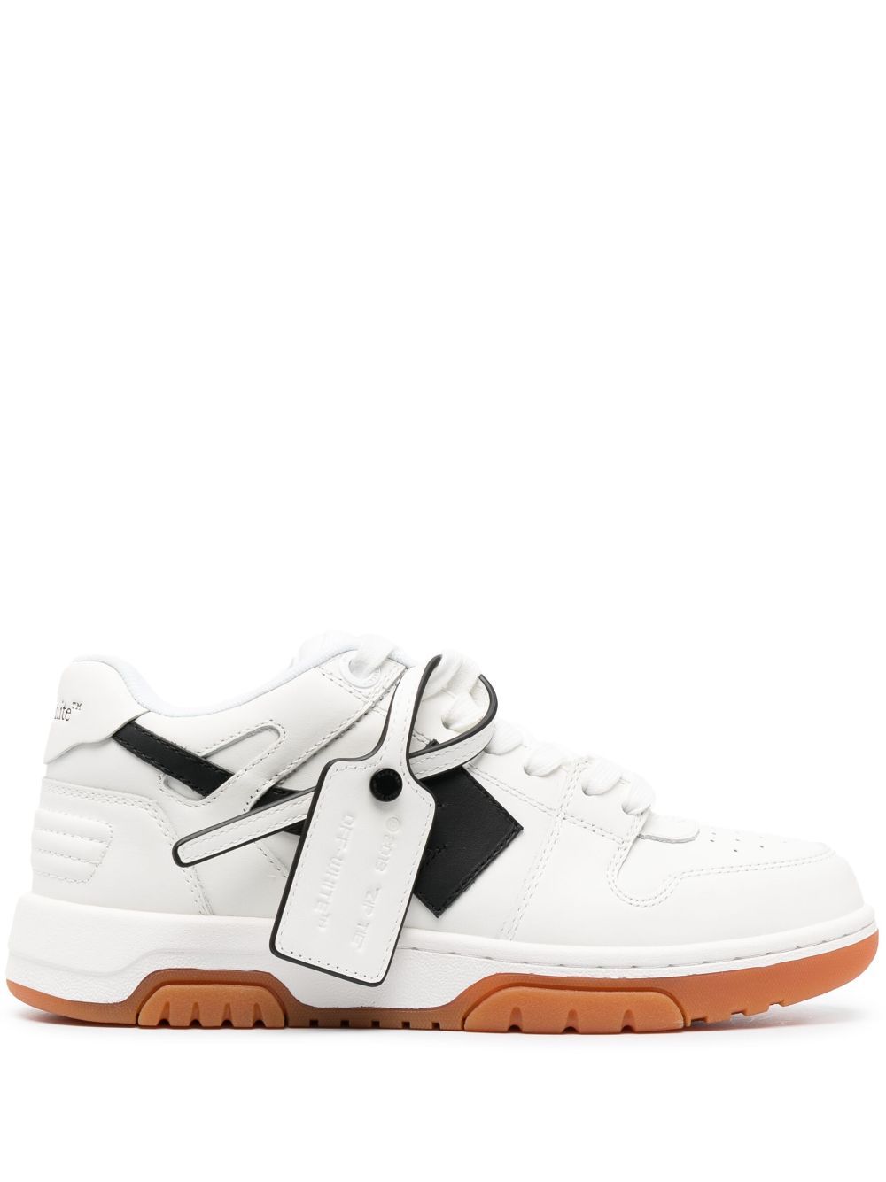 Off-White's Out of Office sneaker merges street, basketball, and running influences in a single design. Coupled with a suggesting name, the pair aims 'to empower the public to escape the mundane and to create their world of infinite possibilities. Crafted from leather, this iteration features signature brand motifs such as the arrow and zip tie tag.