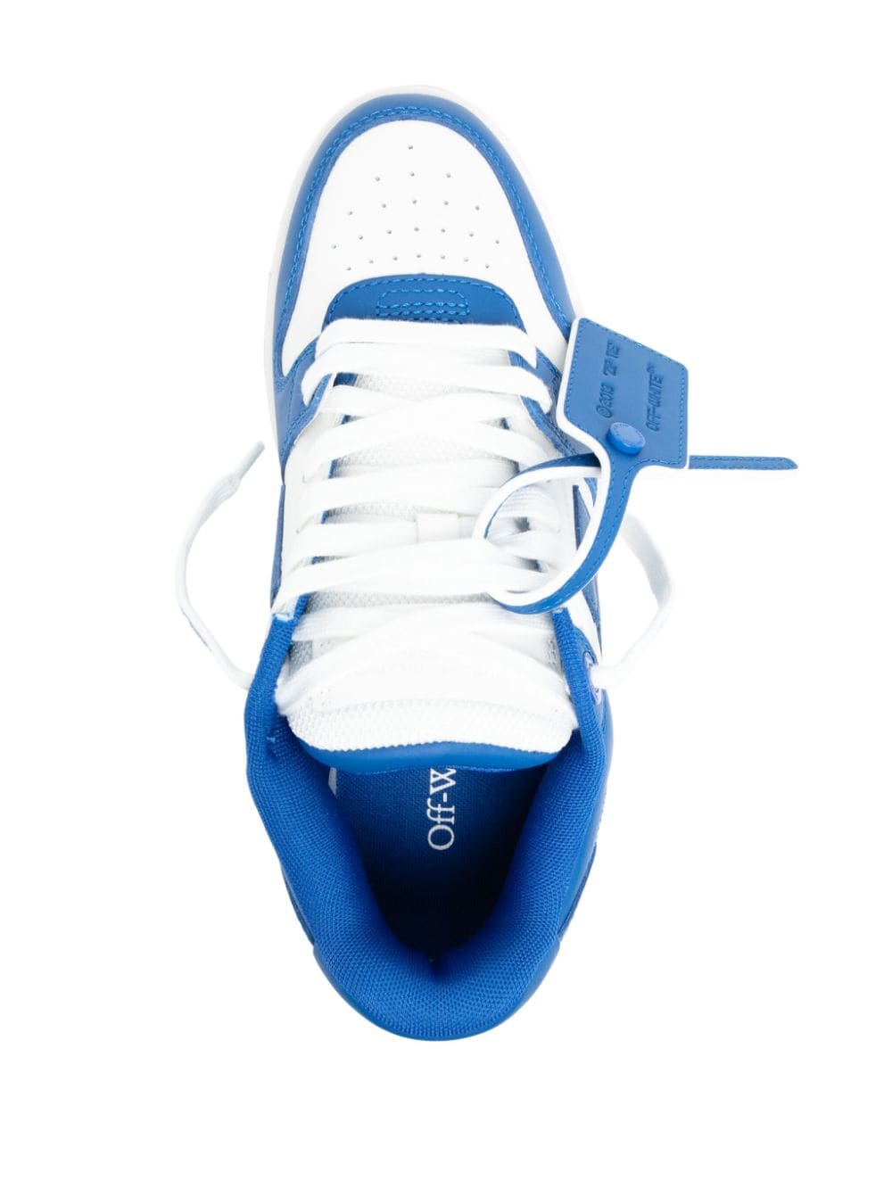 Inspired by classic basketball silhouettes, the Out Of Office sneakers boast a colour-block upper that's crafted from supple calf leather. They're fitted with Off White's key house motifs, like an Arrow patch at the side and a Zip Tie tag at the laces.