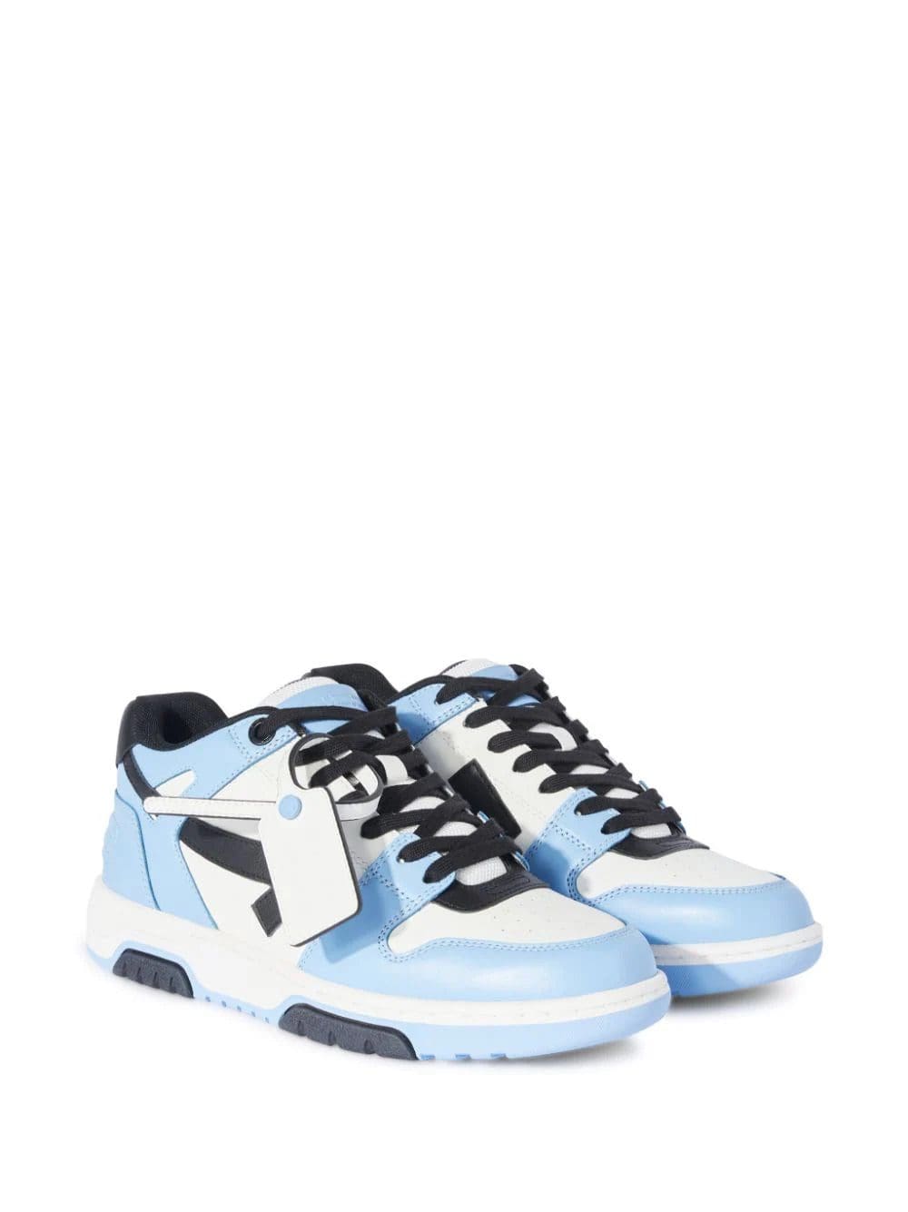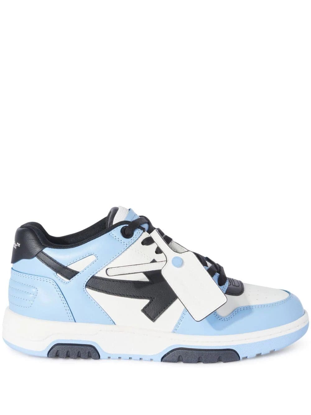 A hybrid design, these Out of Office sneakers by Off-White blend streetwear, basketball, and track influences. They’re rendered in light-blue leather and mesh with an iconic Arrows motif and Zip Tie tag acting as distinctive finishing touches.